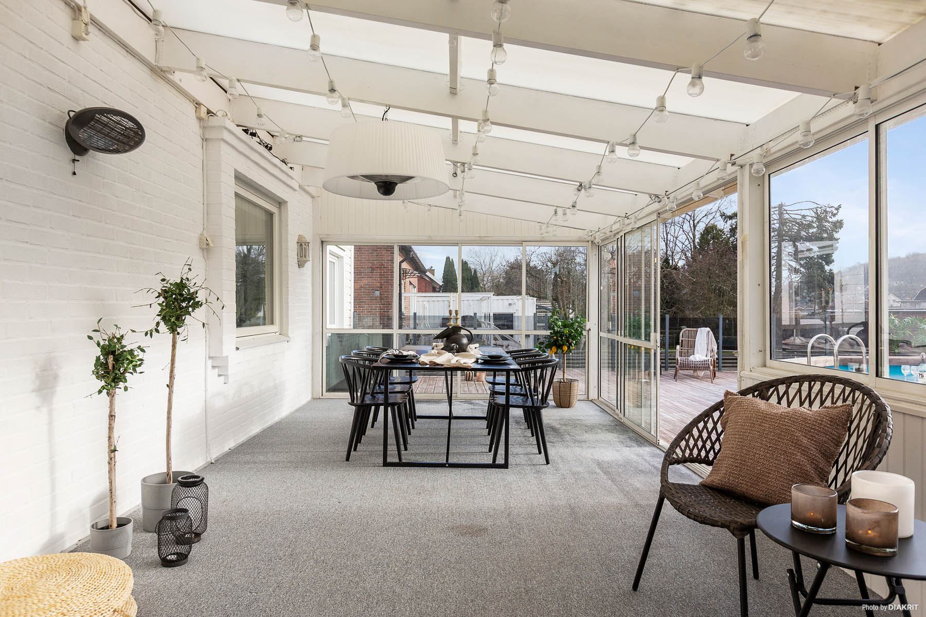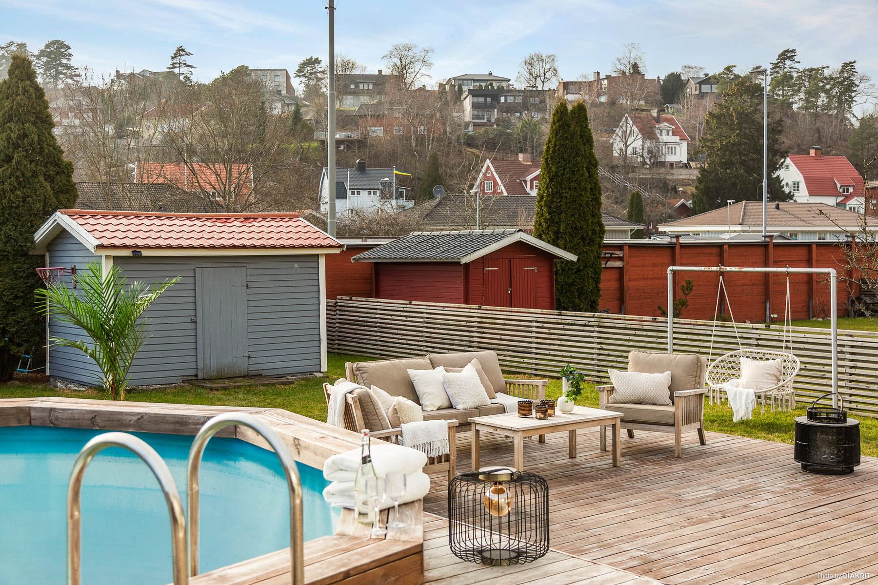 Här presenteras ett charmigt 1 1/2 plansvilla med källare som har en genomtänkt layout som passar perfekt för den växande familjen eller den som värdesätter generösa ytor för umgänge och avkoppling. Bostaden erbjuder ljusa och luftiga rum, samt moderna bekvämligheter med gott om förvaringsutrymme. Vid entrén möts du av en rymlig hall med praktisk avhängningsmöjlighet, en gästtoalett, ett inbjudande och stort vardagsrum samt en mångsidig matsal som enkelt kan anpassas till ett extra sovrum vid behov. Det funktionella köket är utrustat med gott om förvaring och arbetsytor, med direkt tillgång till ett generöst uterum. Uterummet leder ut till en stor altan med en pool, omgiven av en trivsam gräsmatta och ett praktiskt förråd. På övervåningen finner du två rymliga sovrum och ett stilrent badrum. Ett av sovrummen har dessutom tillgång till en stor balkong med härlig utsikt över området och trädgården. Källarplanet erbjuder extra utrymmen för både sociala aktiviteter och praktiska ändamål, inklusive ett mysigt rum, hobbyutrymme och tvättstuga.