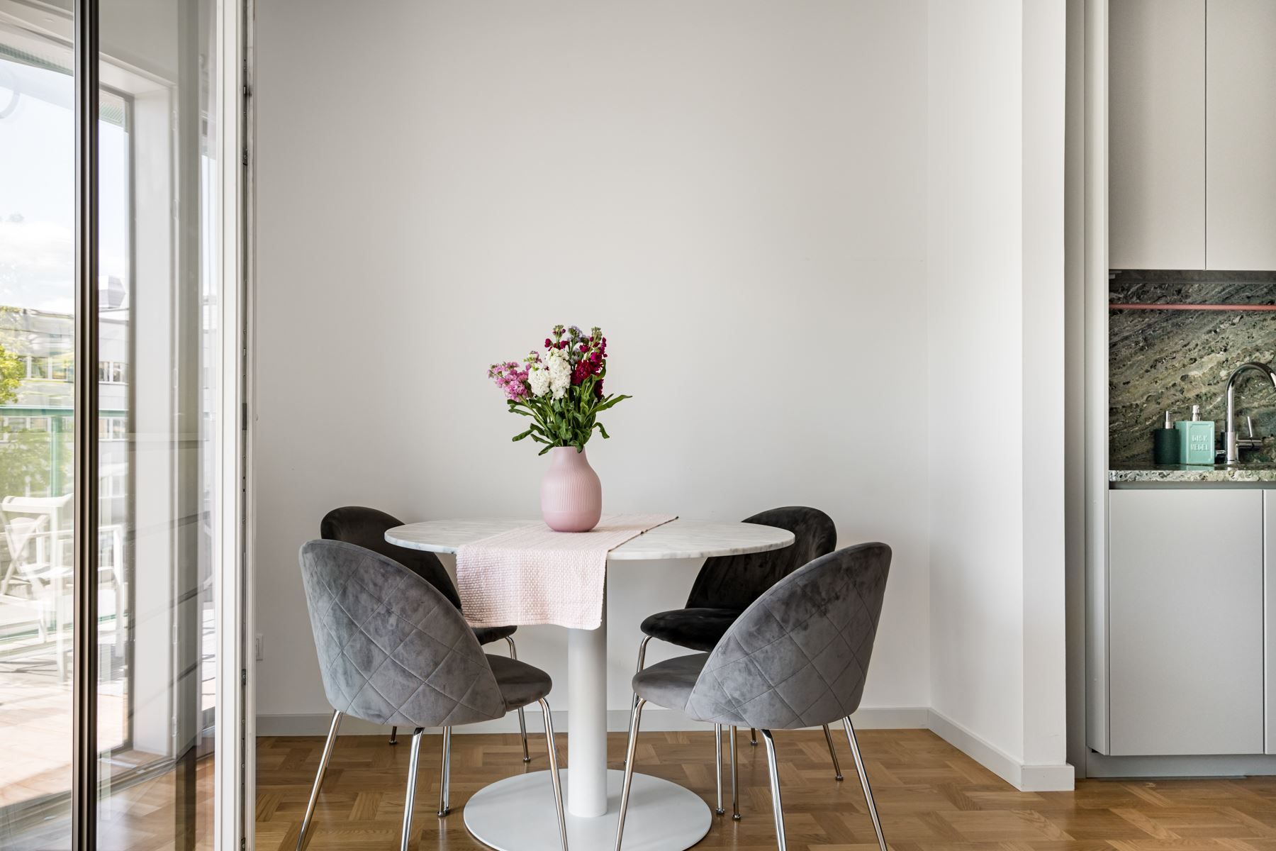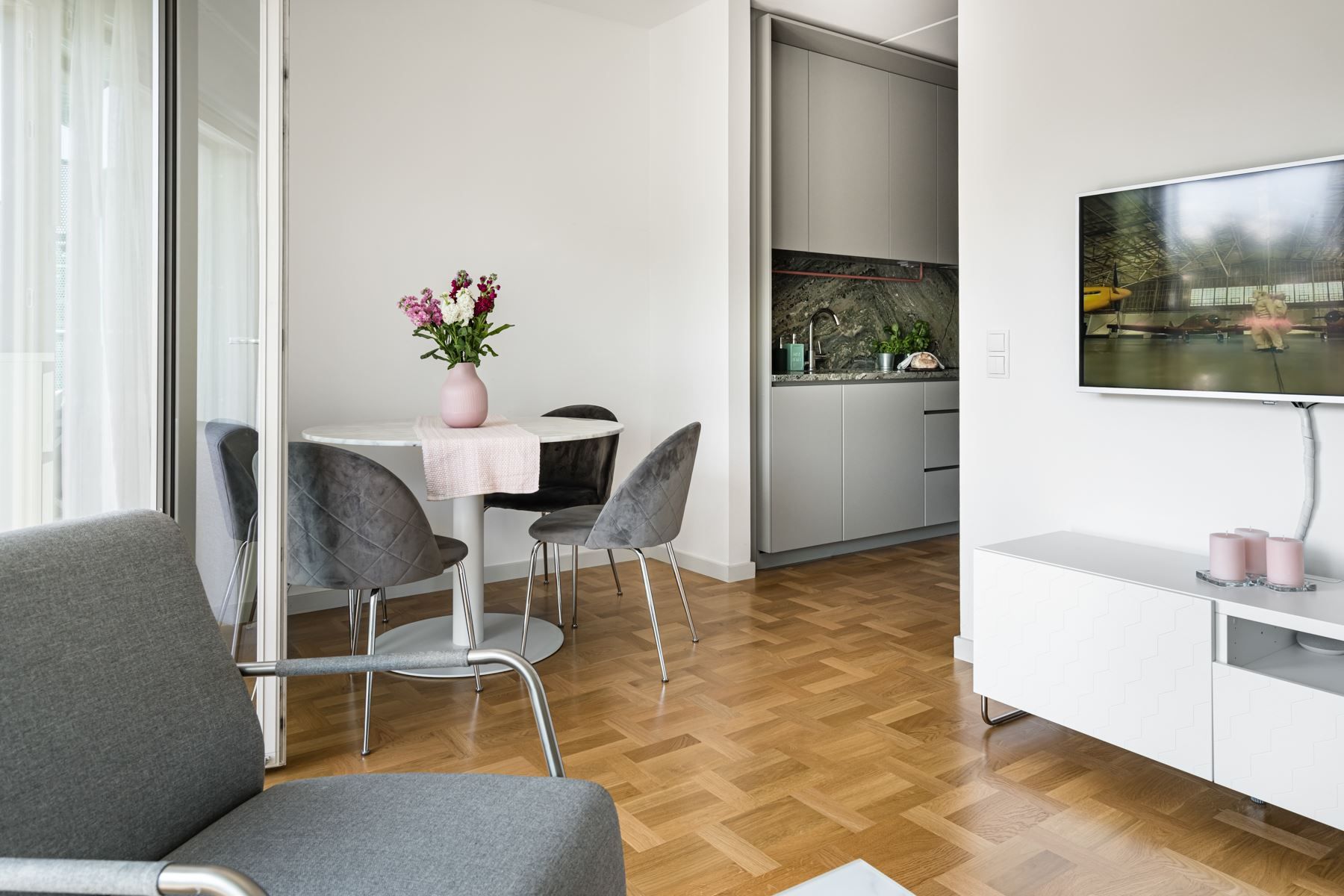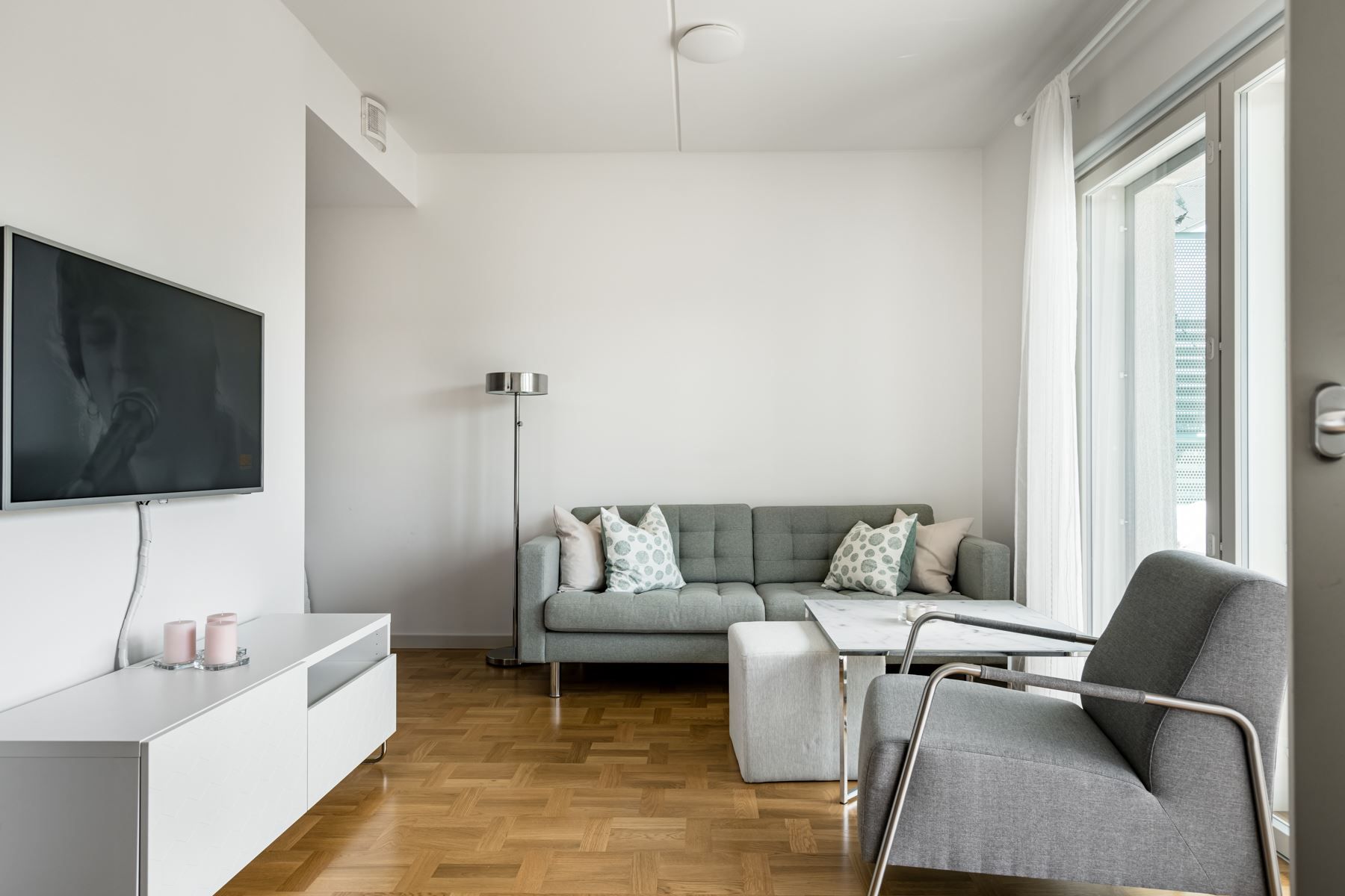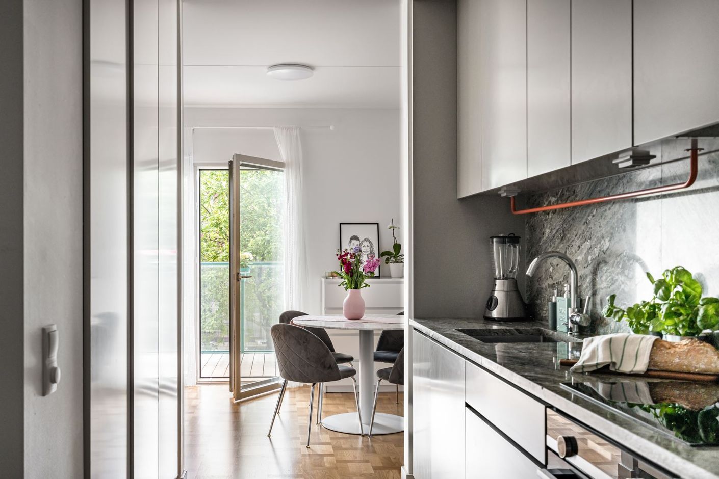 När det nya äntligen känns personligt! Planlösningen är maximerad och ingen kvadratmeter har här gått åt spillo. Genomgående fina materialval där äkta holländsk parkett möter hög takhöjd (ca 2.65 m) samt panoramafönster. Vardagsrum och kök i öppen social planlösning som rymmer matbord och soffgrupp invid tv-möblemang. Separat sovdel i anslutning.