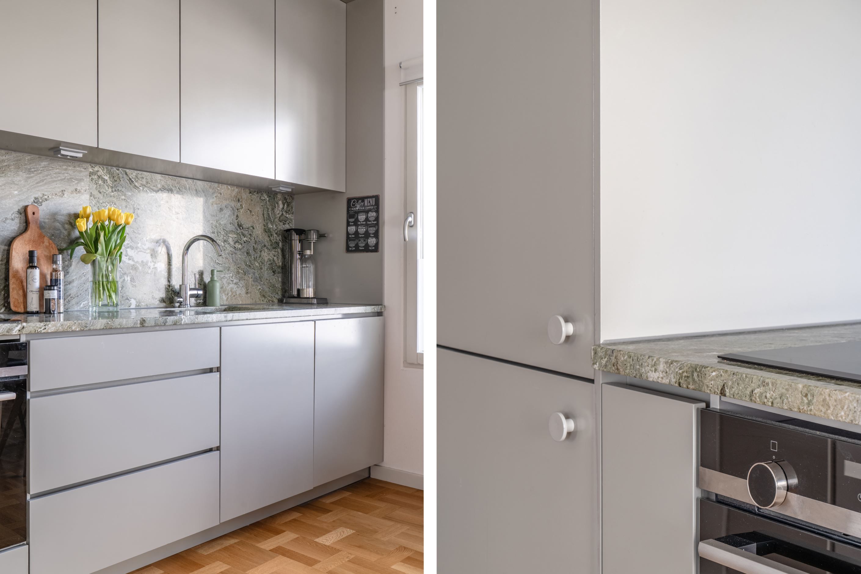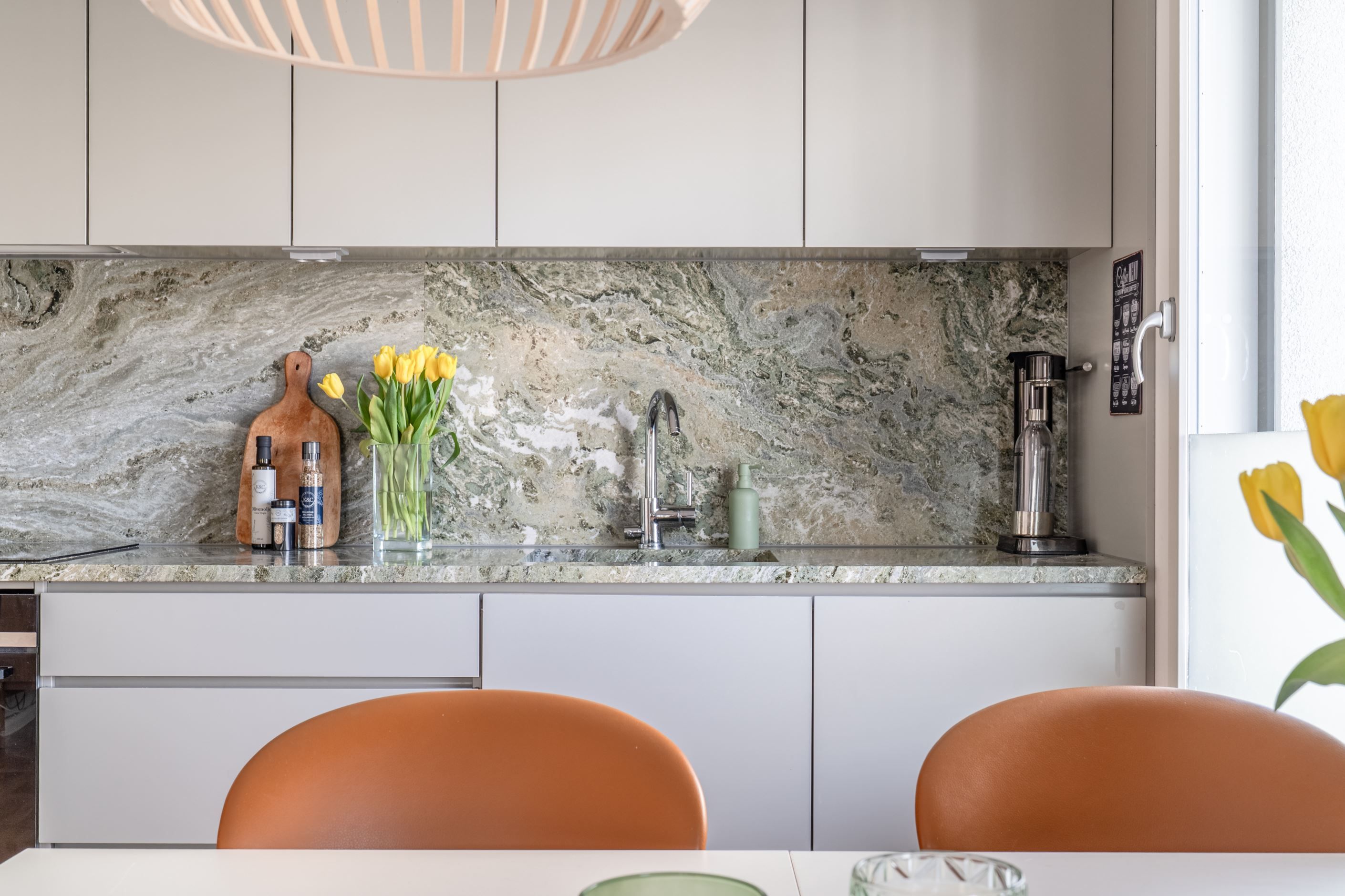 - Påkostade materialval med bl.a. grön marmor