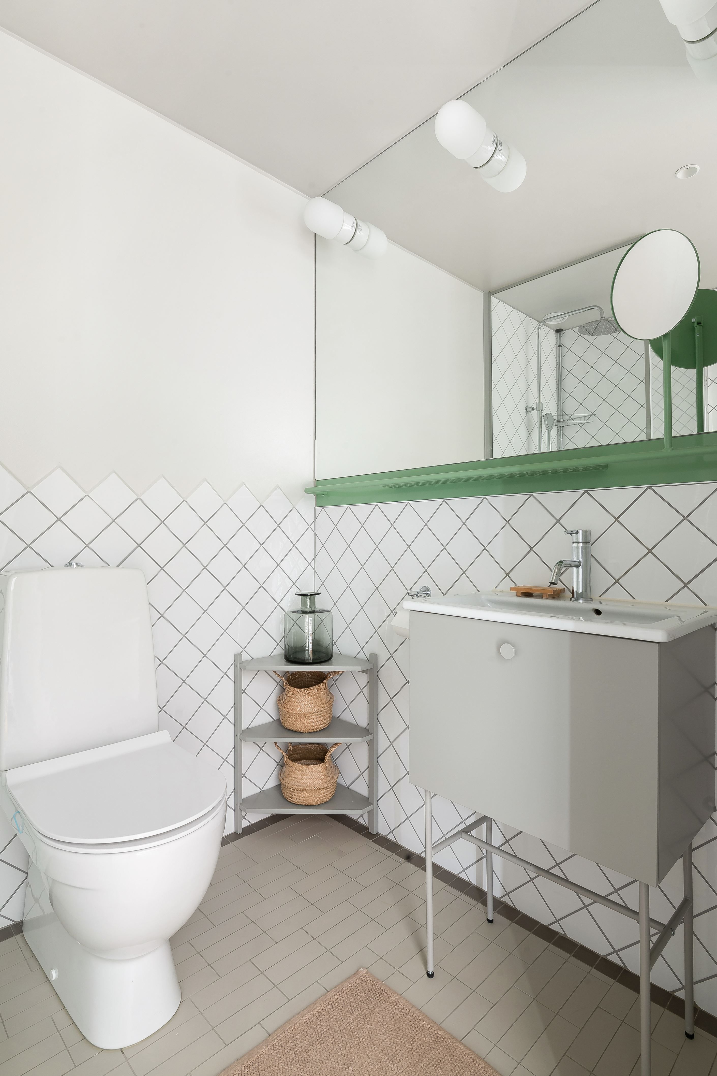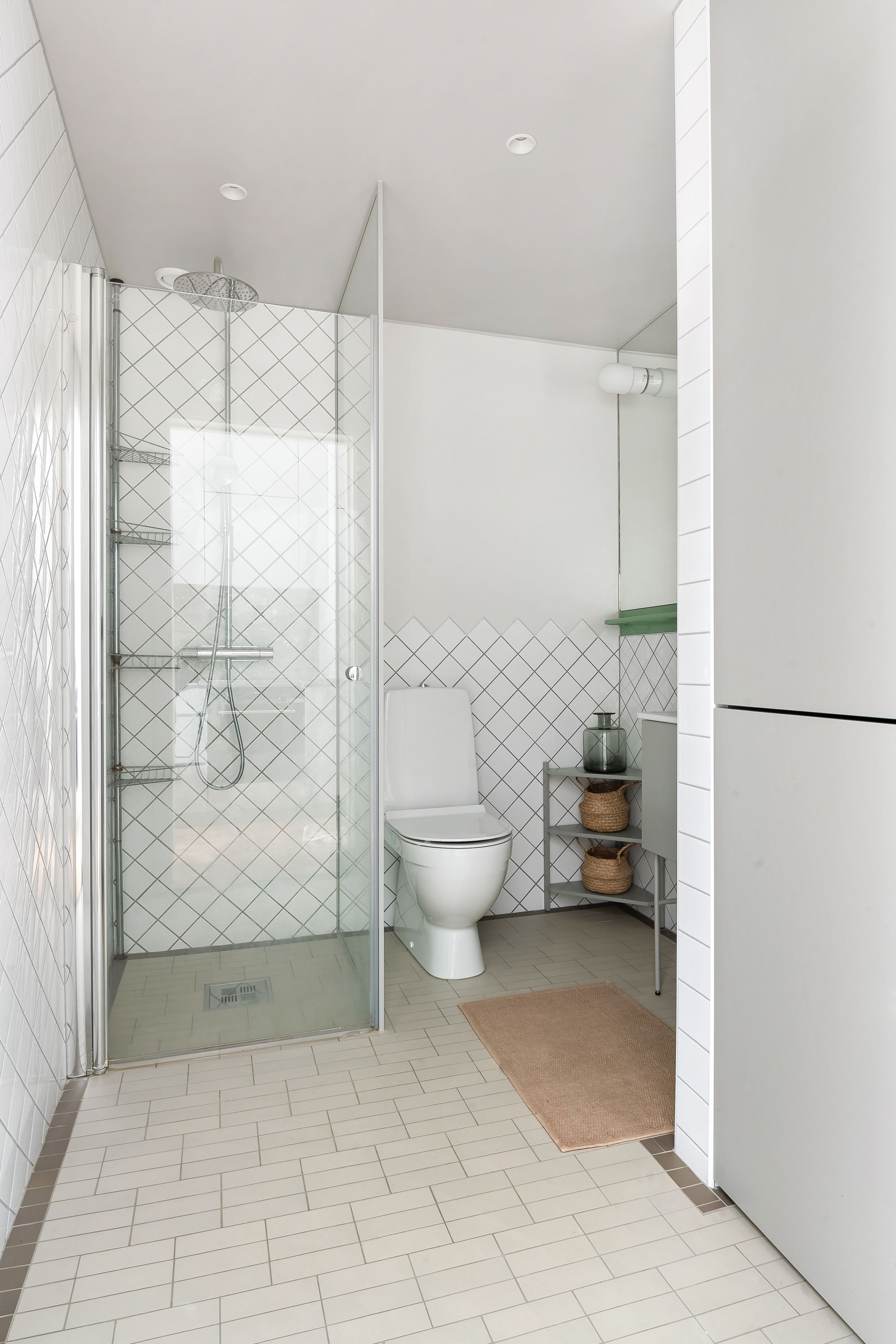 Badrummet är stilrent och fullt utrustat med både tvättmaskin och torktumlare samt praktiska förvaringslösningar. Golvvärme löper genom hela bostaden och varje rum har egen termostat för individuell temperatur.