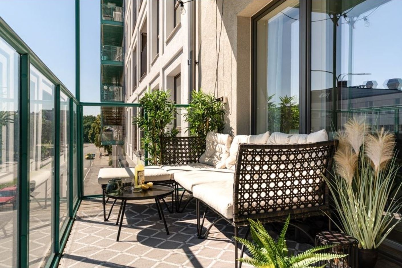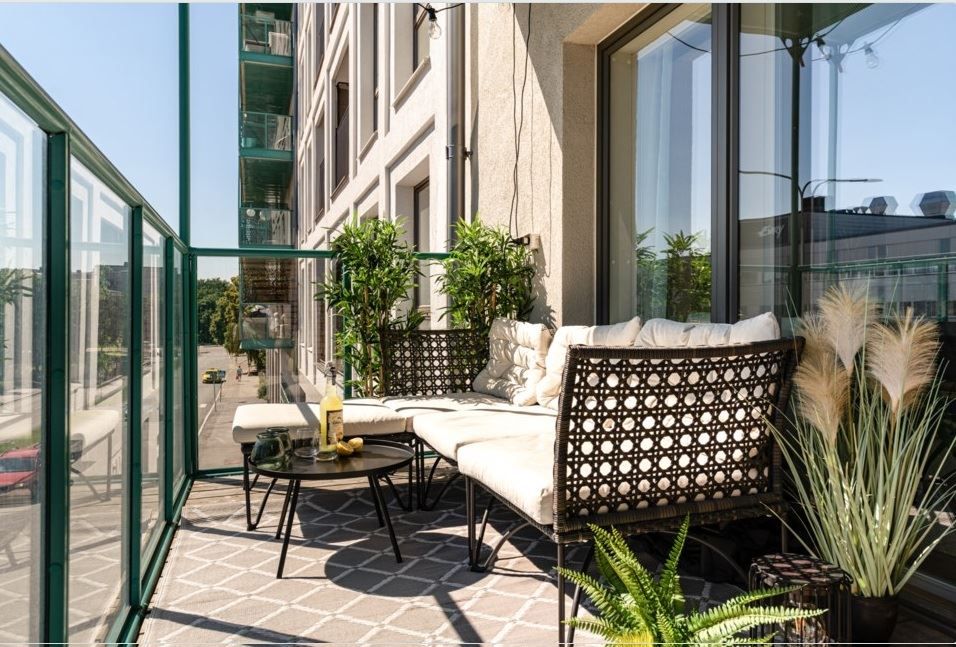 Från vardagsrummet nås den rymliga balkongen om cirka 6 kvm. Här finns gott om plats för loungemöbler eller ett mindre matbord – en perfekt plats för morgonkaffe, middag i kvällssolen eller en lugn stund utomhus.