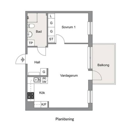 Välkomnande och rymlig hall med gott om plats för avhängning samt bra förvaring i en praktisk garderobsvägg. Vidare in i bostaden möts ni av ett ljust och socialt vardagsrum i öppen planlösning mot köket, vilket skapar en härlig rymd och plats för både soffgrupp och matbord för större sällskap. Från vardagsrummet nås bostadens balkong som vetter mot ett lugnt villaområde.