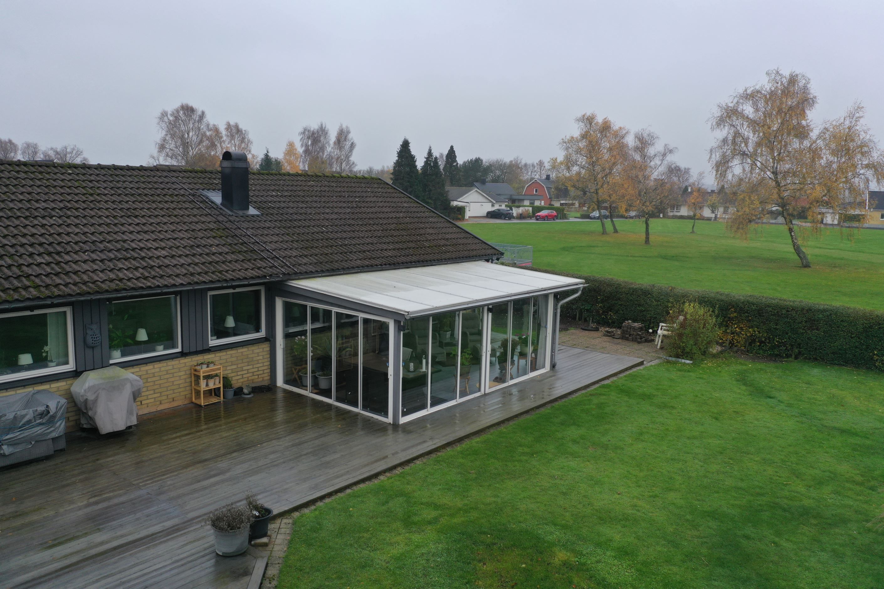 Utöver ovan finns det en mysig kamin i mitten av huset som skänker både värme och mysfaktor. Fönster är utbytta till 3-glas. Inglasat uterum med skjutpartier och klinker som leder ut till trädäcket.