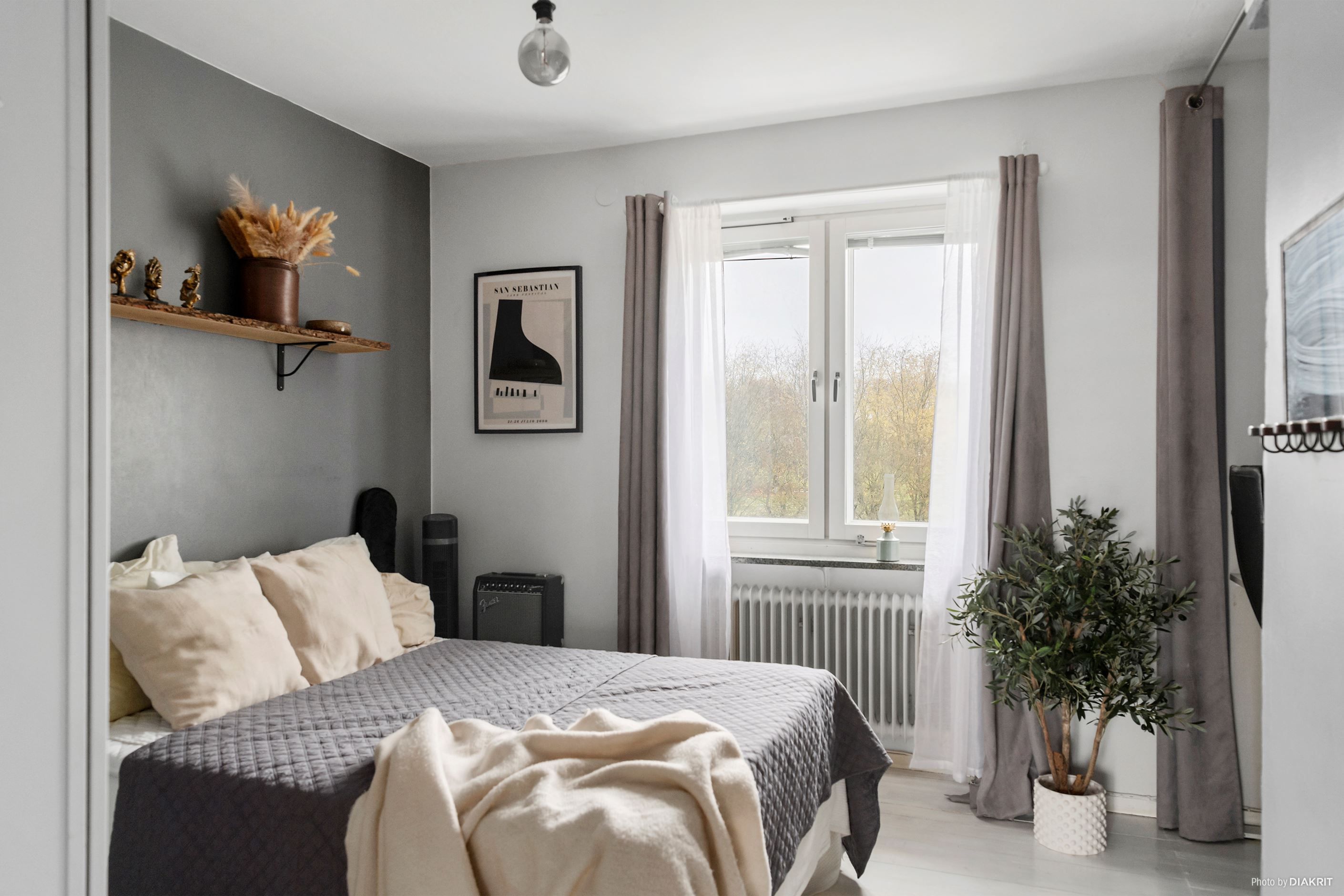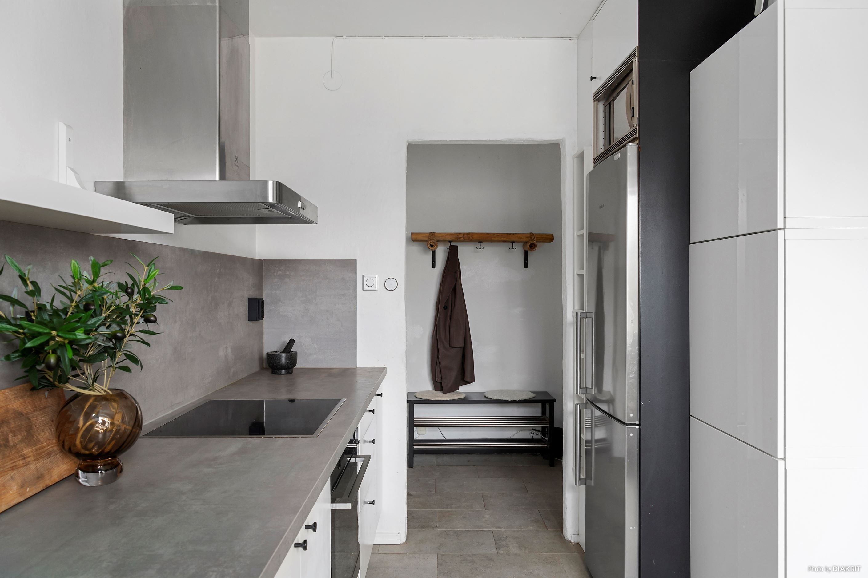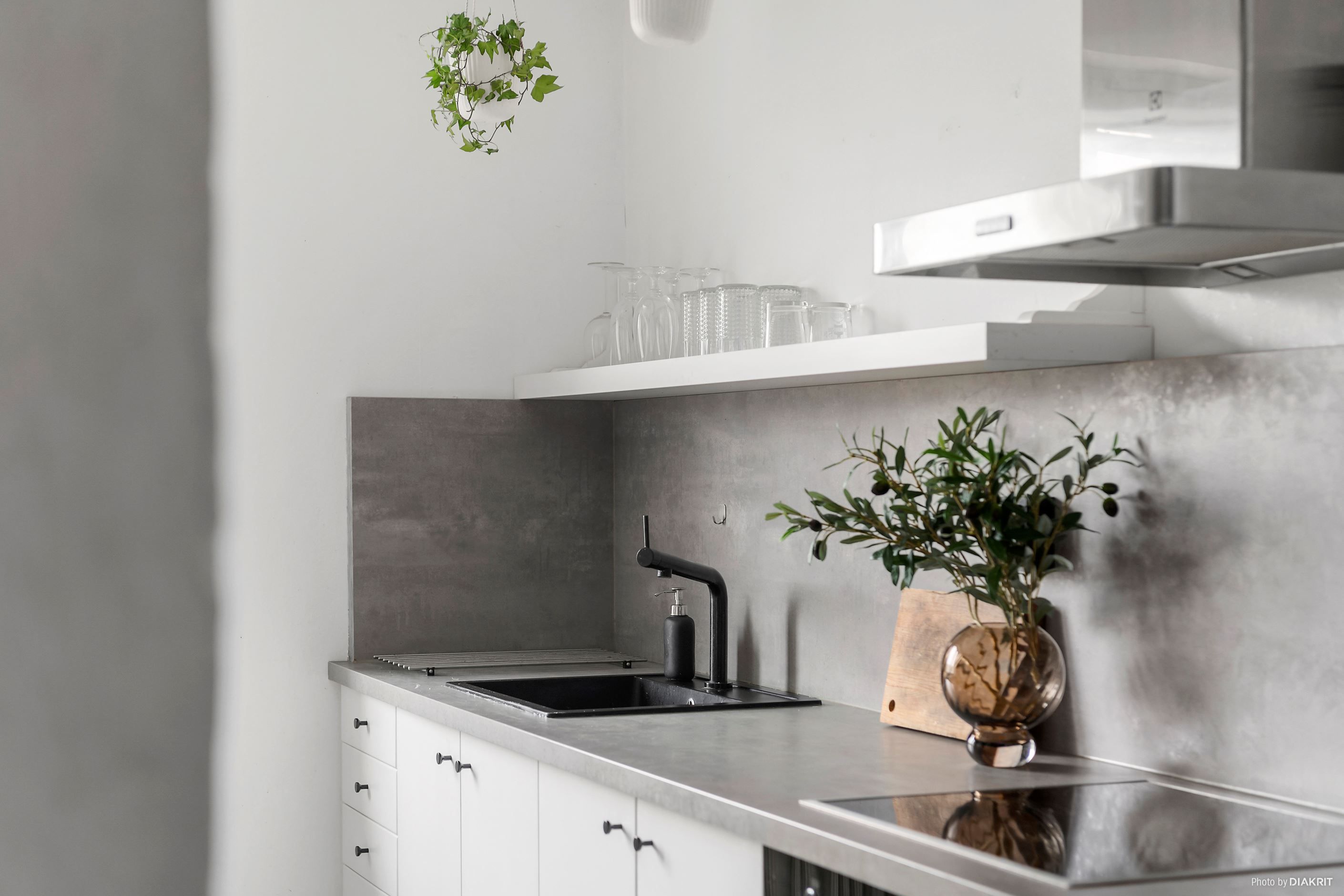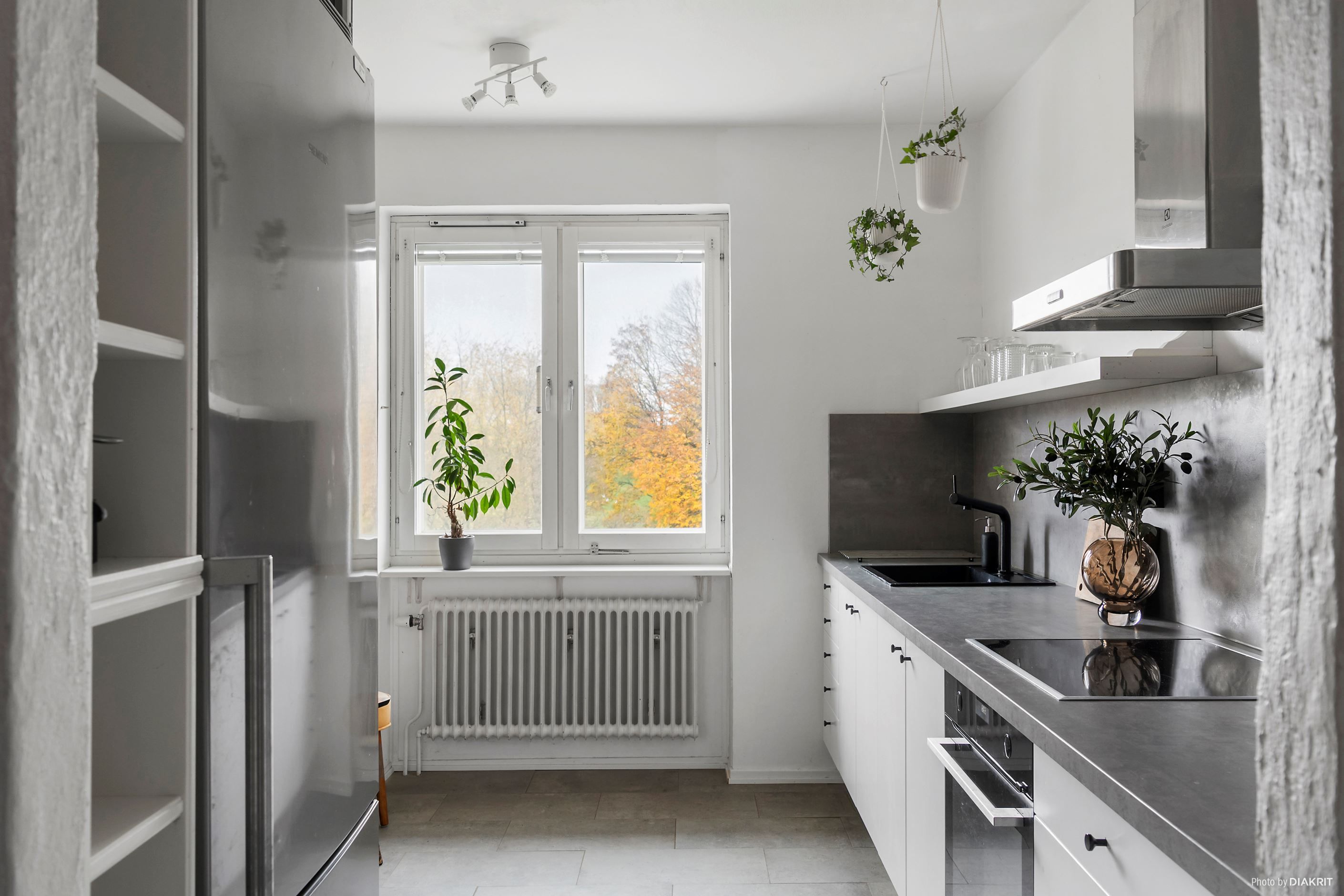 Köket är stilrent och luftigt, med gott om arbetsyta och förvaringsmöjligheter - här finns plats för både matlagning och umgänge. Det rofyllda sovrummet är väl tilltaget med plats för både dubbelsäng och arbetshörna. Det charmiga brädgolvet, de dämpade kulörerna och utsikt över grönområdet Viskängen skapar en lugn och inbjudande atmosfär. Badrummet är helkaklat i klassisk stil och utrustat med både dusch och bra förvaring.