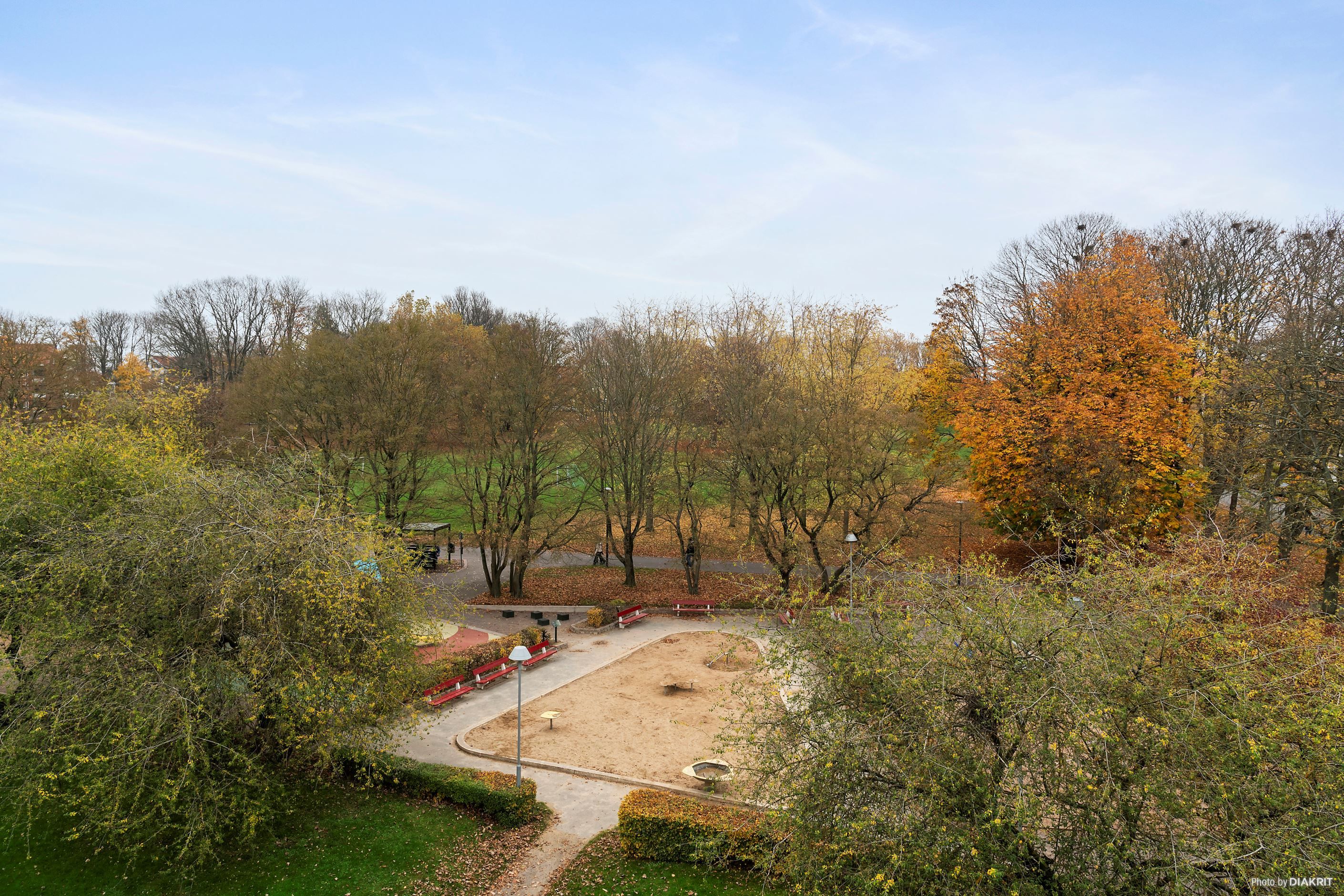 Eneborg är en trivsam stadsdel där lugnet möter närheten till stadens puls. Precis utanför porten har du Viskängen, ett grönt andrum perfekt för promenader och avkoppling. Med mataffärer, service och restauranger runt hörnet och cykelavstånd till centrum, havet och strandpromenaden bor du både bekvämt och naturnära.
