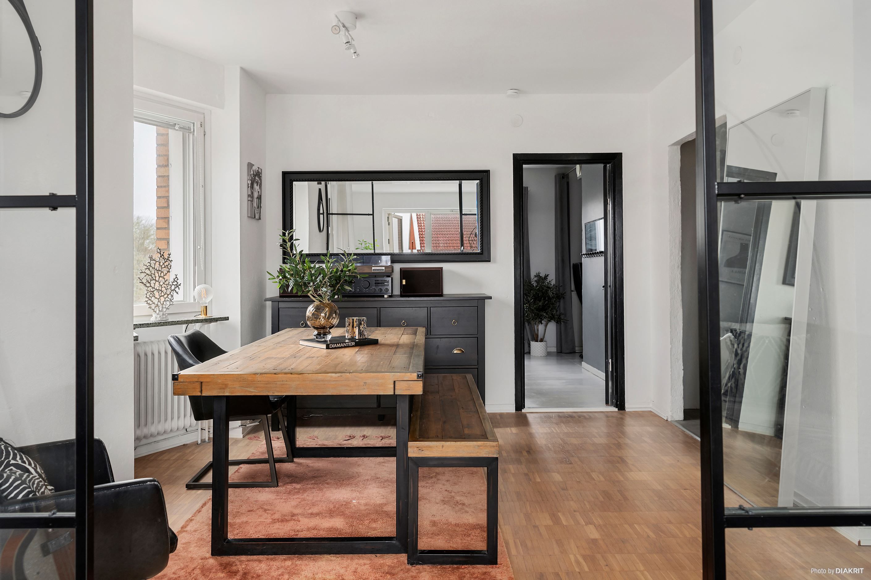Högst upp i huset, i eftertraktade BRF Viskan, finner du denna smakfullt renoverade och välplanerade tvåa om 56,5 kvadratmeter. En gavellägenhet som bjuder på ett fantastiskt ljusflöde tack vare fönster i tre väderstreck, och kombinerar det bästa av modern komfort i samspel med rustik charm.
