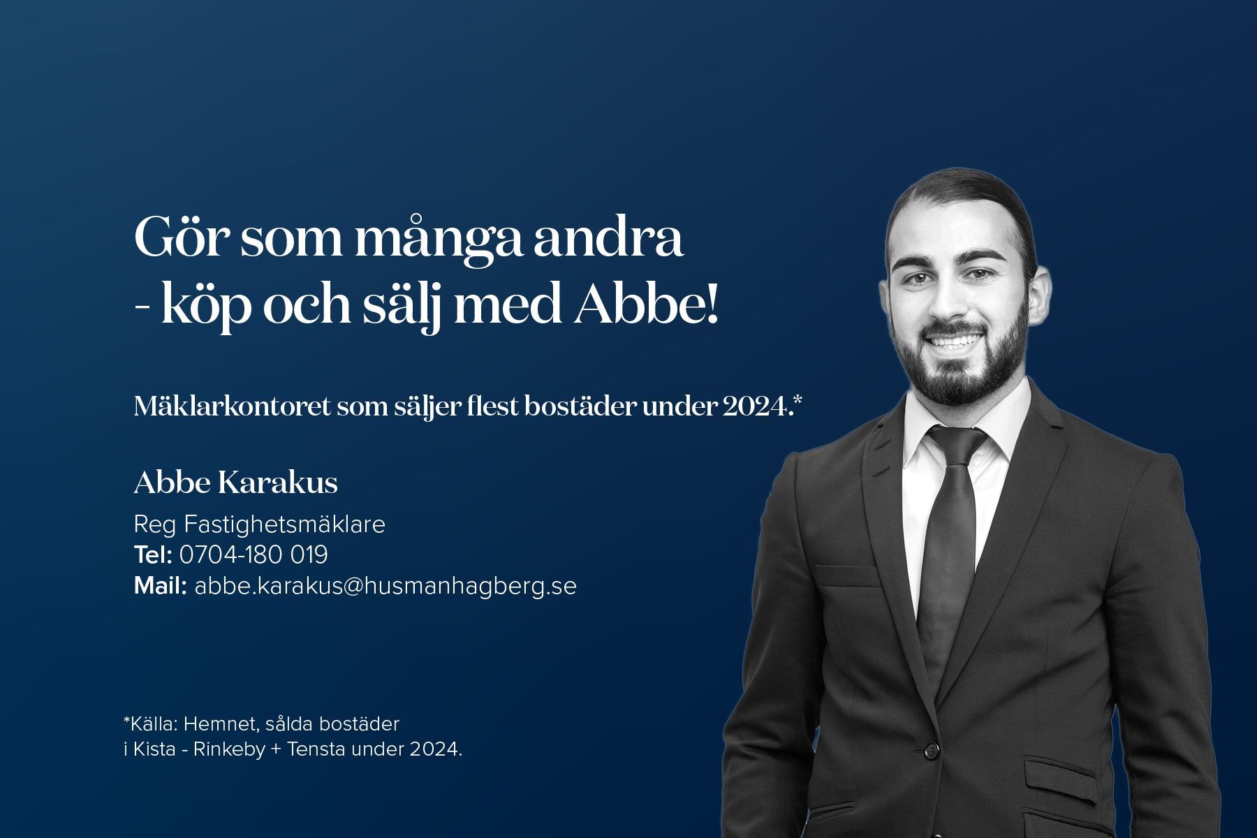 Varmt välkomna till Vissingebacken 3 önskar Abbe Karakus, din lokala mäklare i Tensta!