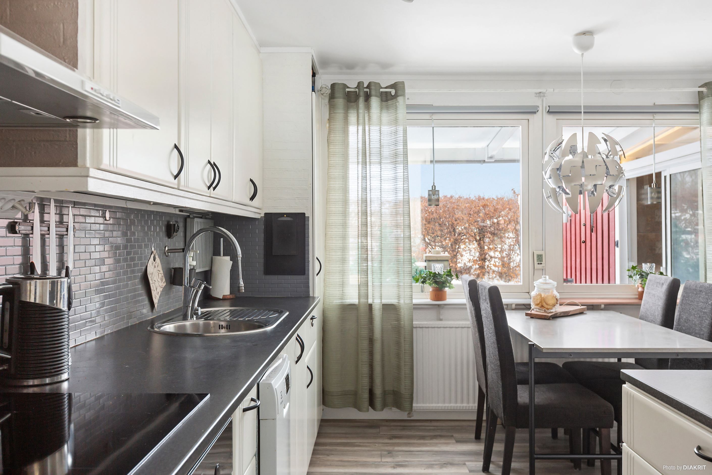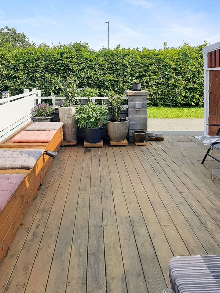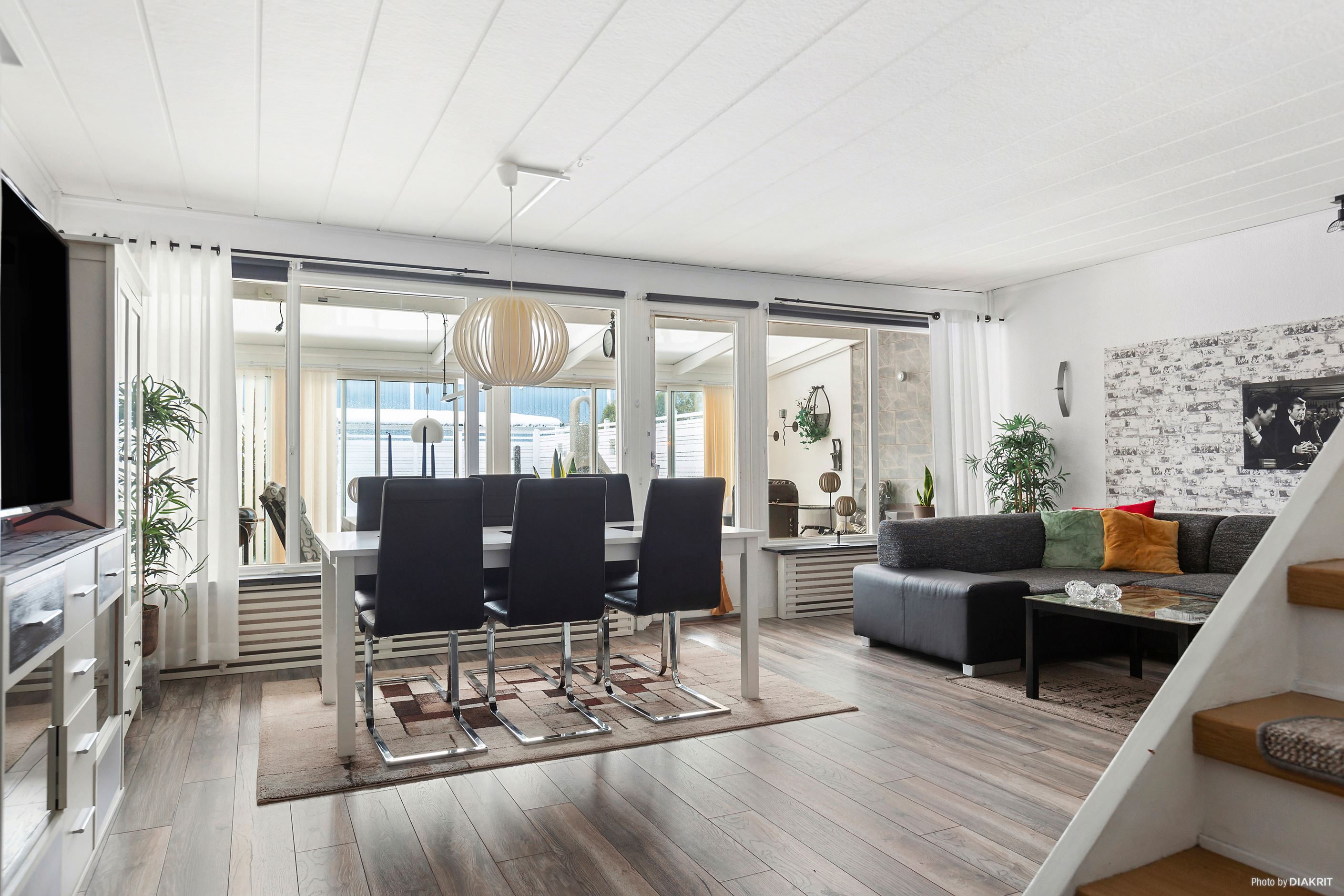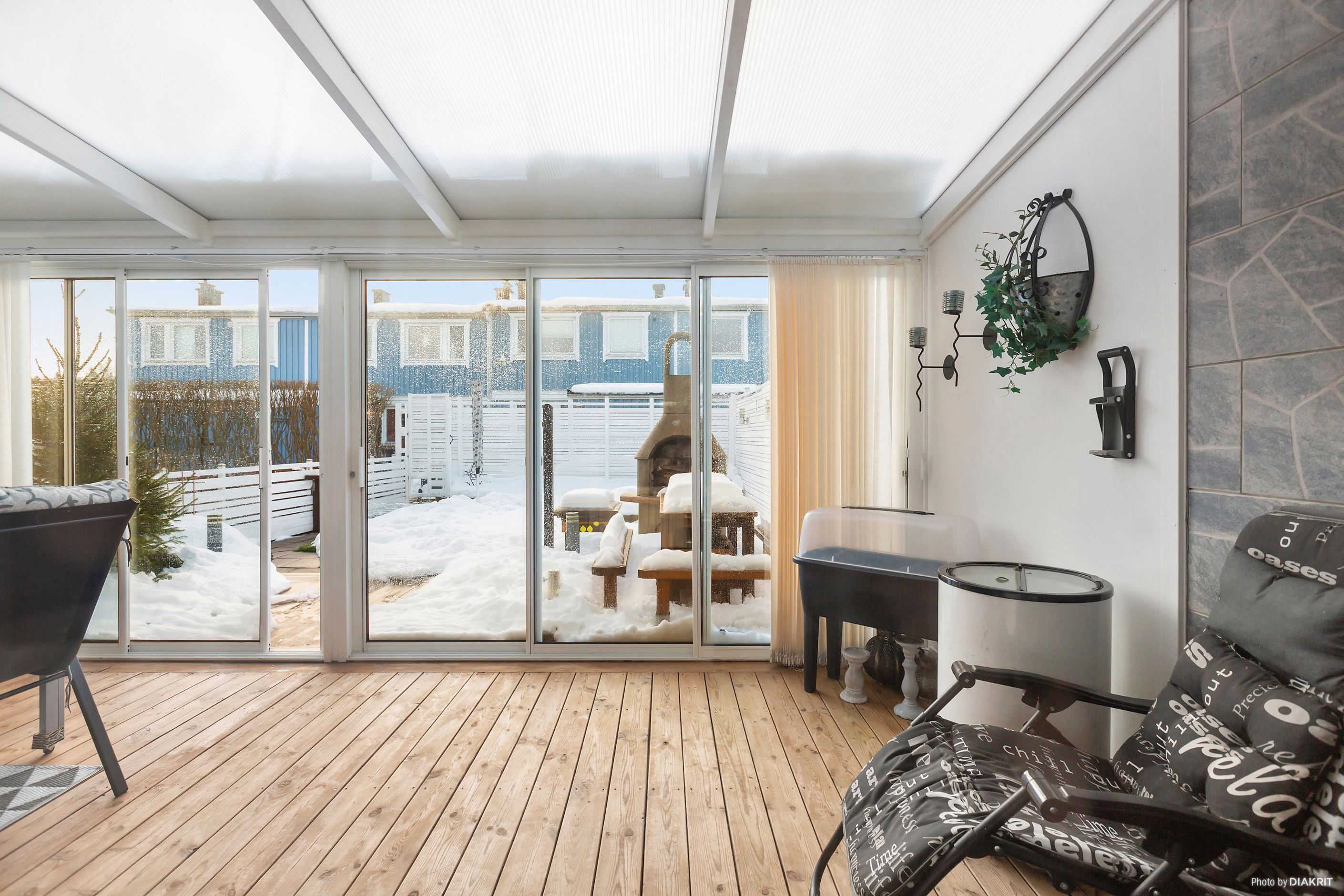 Bostaden präglas av ett härligt ljusinsläpp tack vare den stora inglasningen mot baksidan, som suddar ut gränsen mellan inne och ute och skapar en ljus och inbjudande atmosfär året runt. Härifrån nås den fina trädgården – en grön och trivsam plats som passar lika bra för avkoppling som för umgänge, odling eller lek. Även på framsidan vid entrén finns en inglasning.