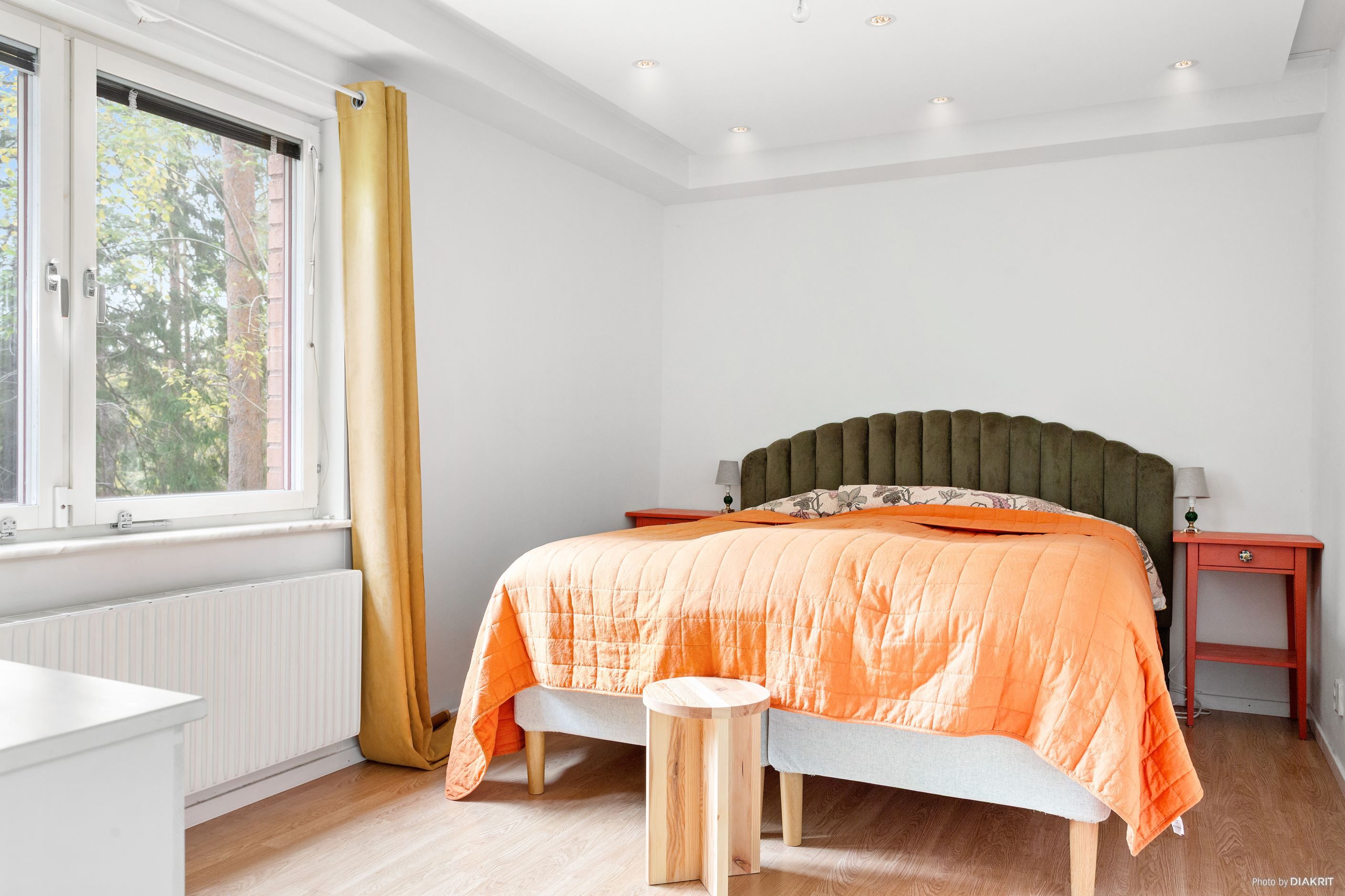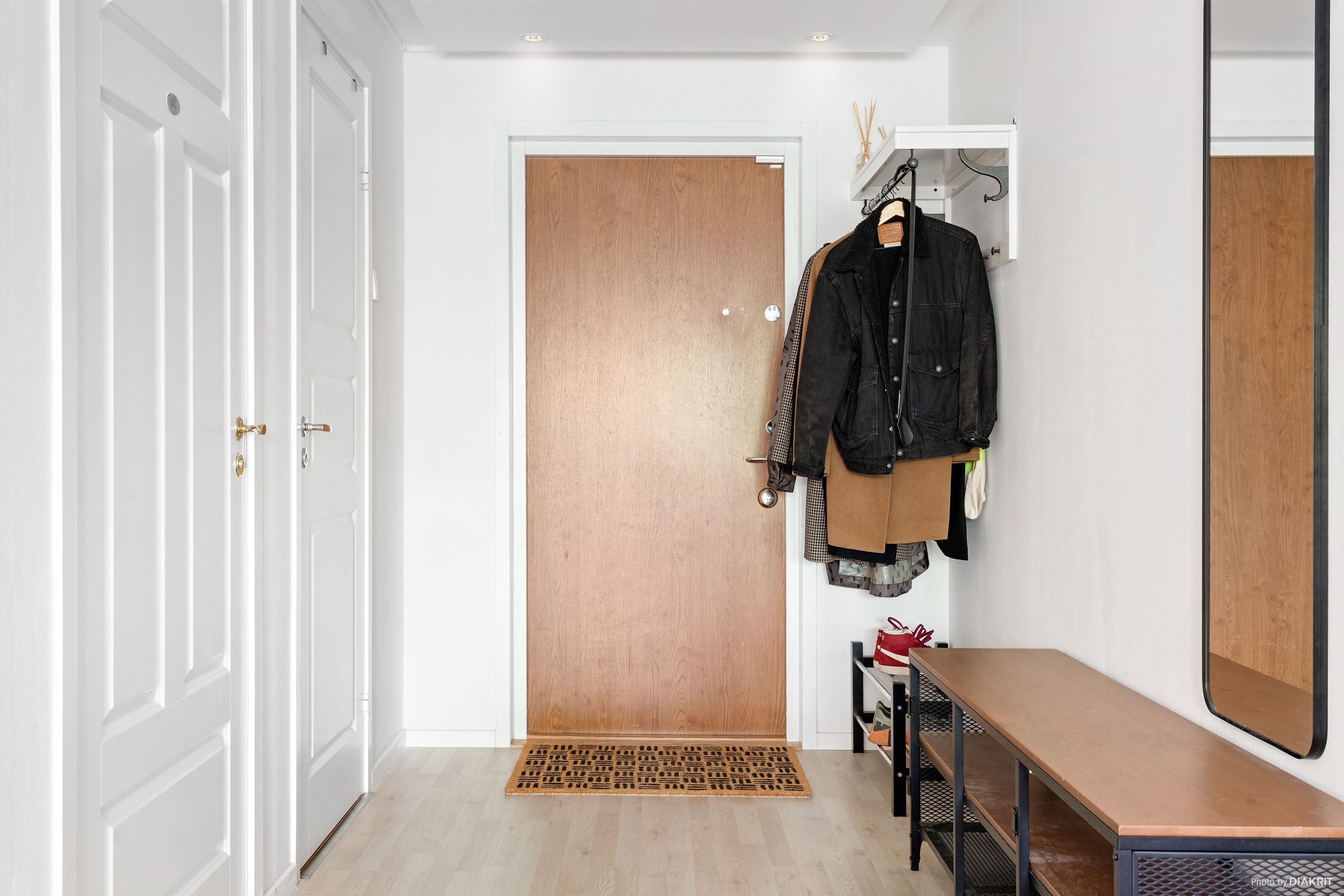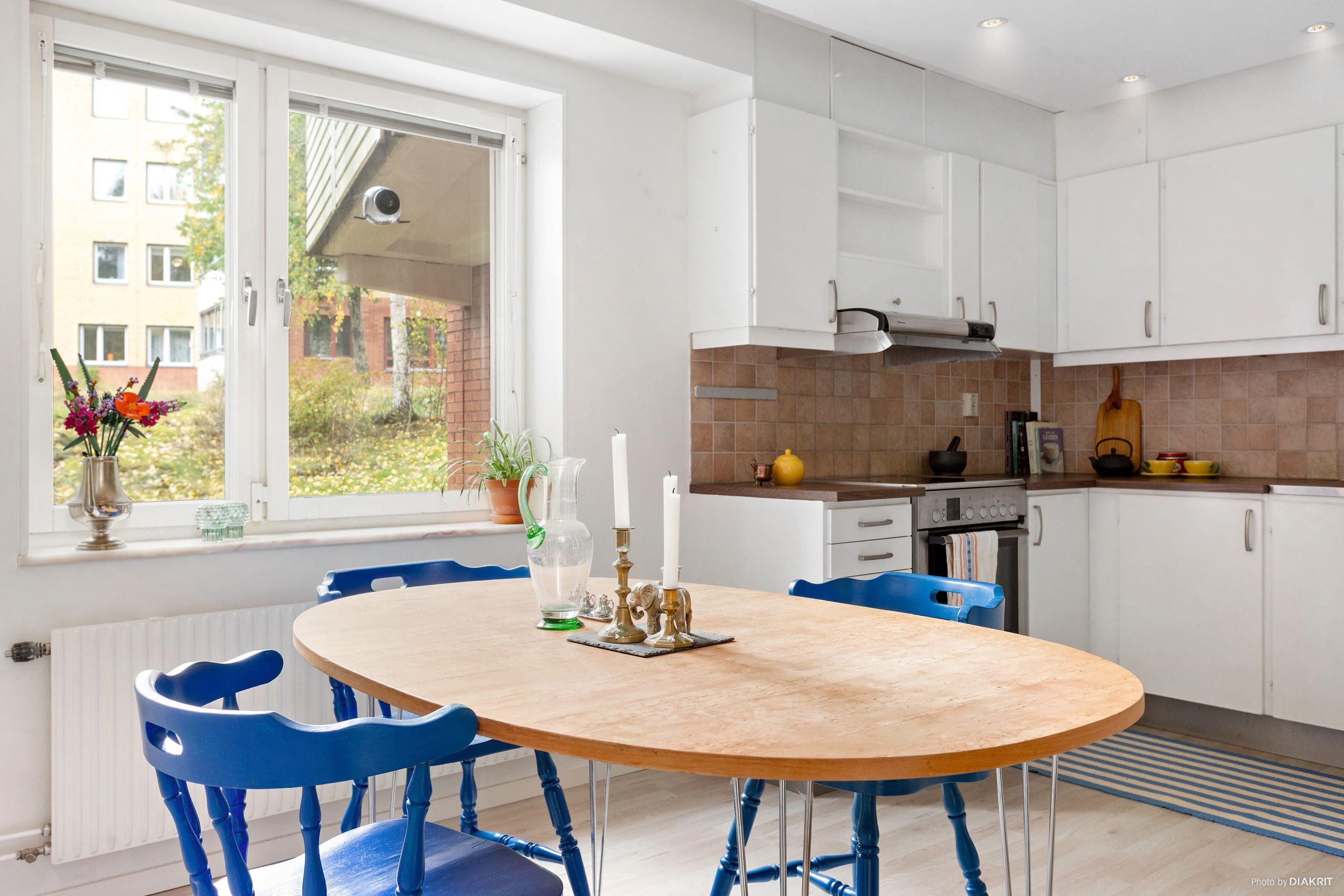 Lägenheten har kök med plats för matbord vid fönster, rymligt badrum samt två fina sovrum. Den trädäckade uteplats i söderläge och lägenhetens gavelläge ger rikligt med ljus och sol till bostaden.