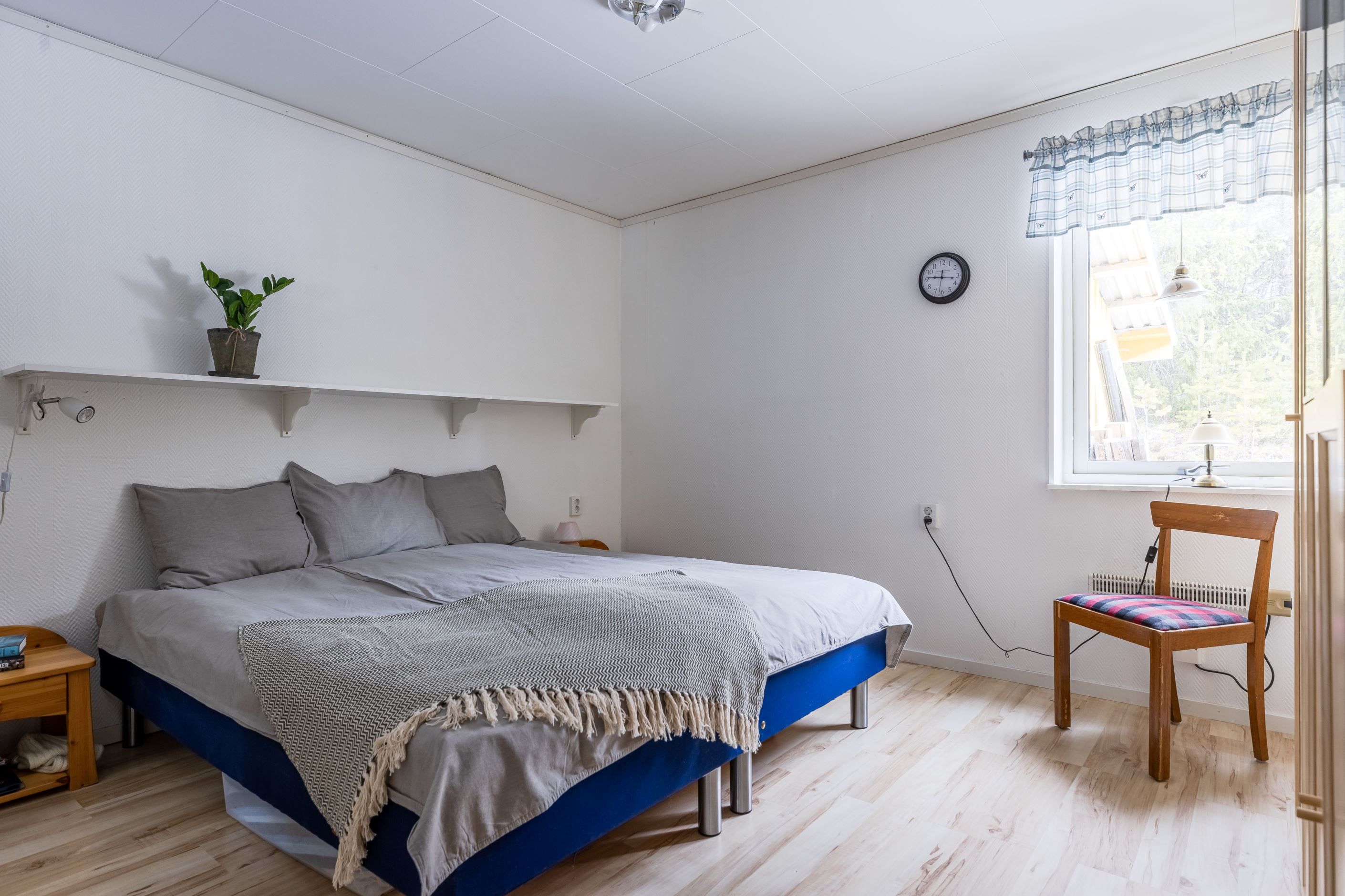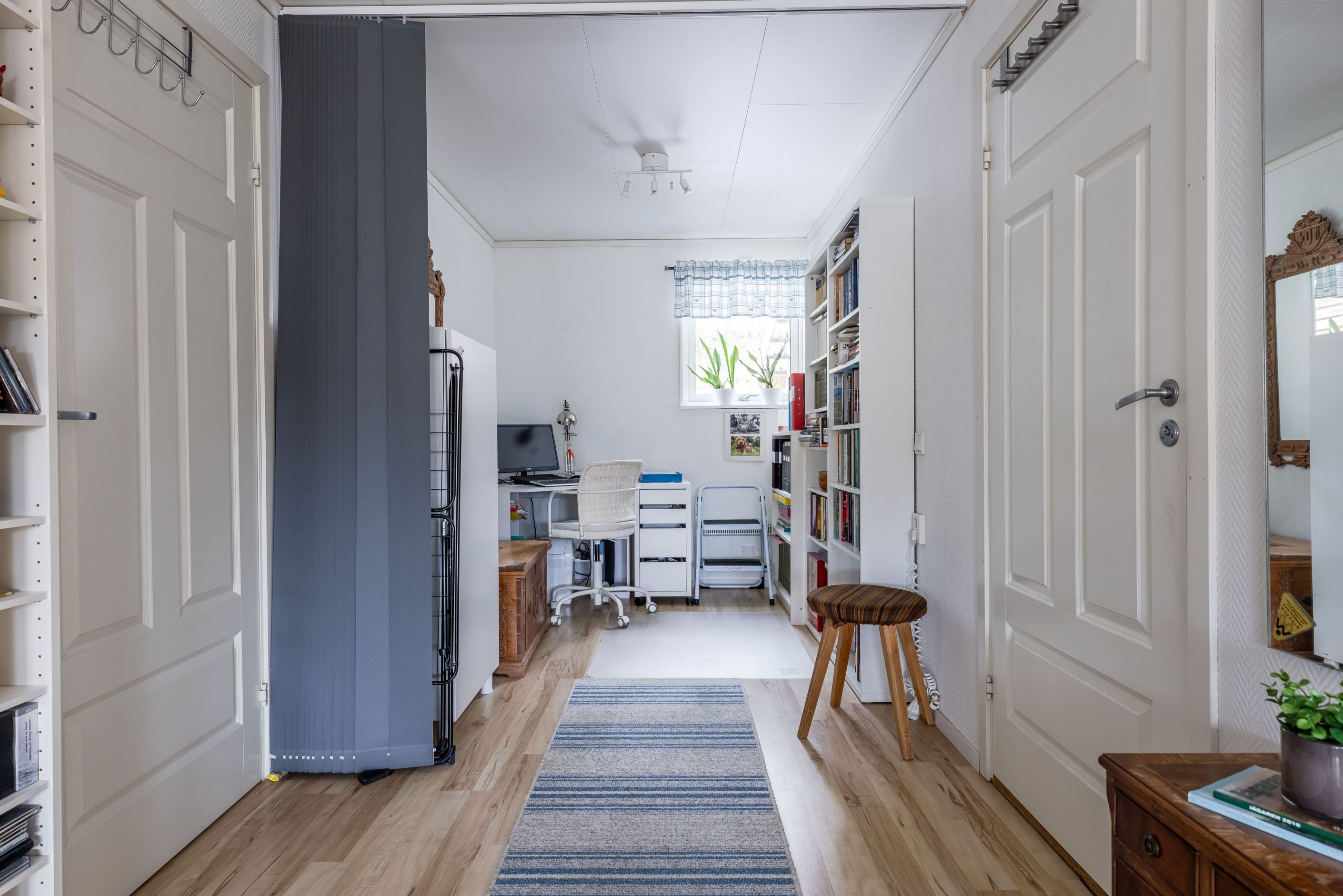 Bostaden har ett sovrum som enkelt kan göras till två genom att sätta upp en vägg till det utrymmet som idag används som kontor.
