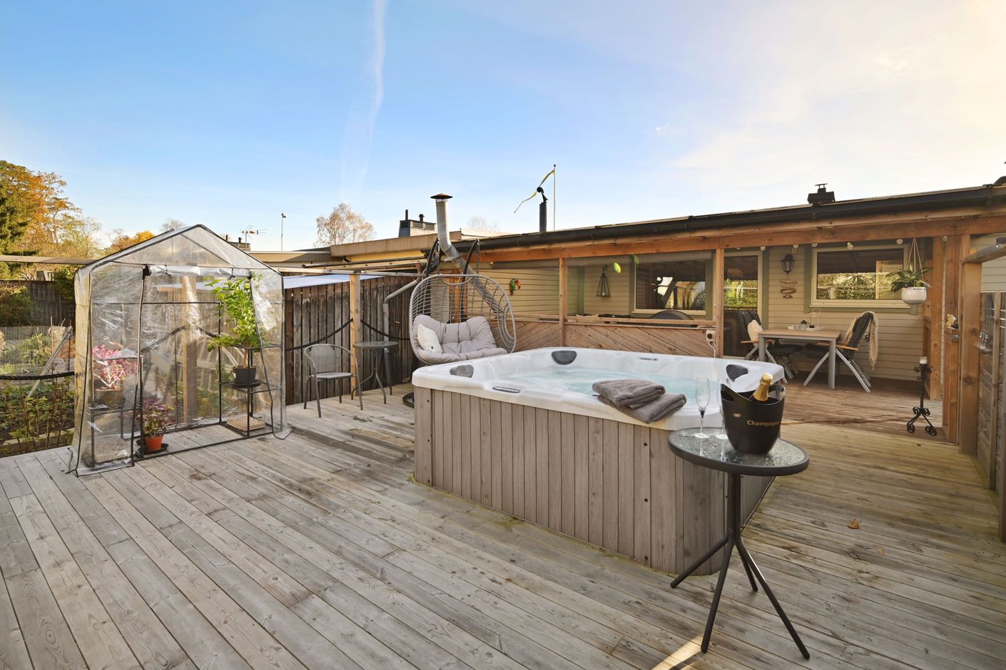 Välkommen till Vivelvägen 8 – en välplanerad och rymlig 1-plansvilla med inredd källare och generösa ytor om totalt drygt 200 kvadratmeter. Här bor du i ett lugnt villaområde i omtyckta Skånsta, på en friköpt, plan och insynsskyddad hörntomt med gott om plats för både avkoppling, lek och praktiskt vardagsliv. Huset är byggt 1969 men har löpande uppdaterats och håller idag en genomgående god standard, både vad gäller funktion och ytskikt. Utemiljön är välkomnande med en grönskande trädgård, en stor uppfart för flera fordon samt en uteplats med spabad – delvis under tak för att kunna nyttjas stora delar av året. Här finns också en braskamin.