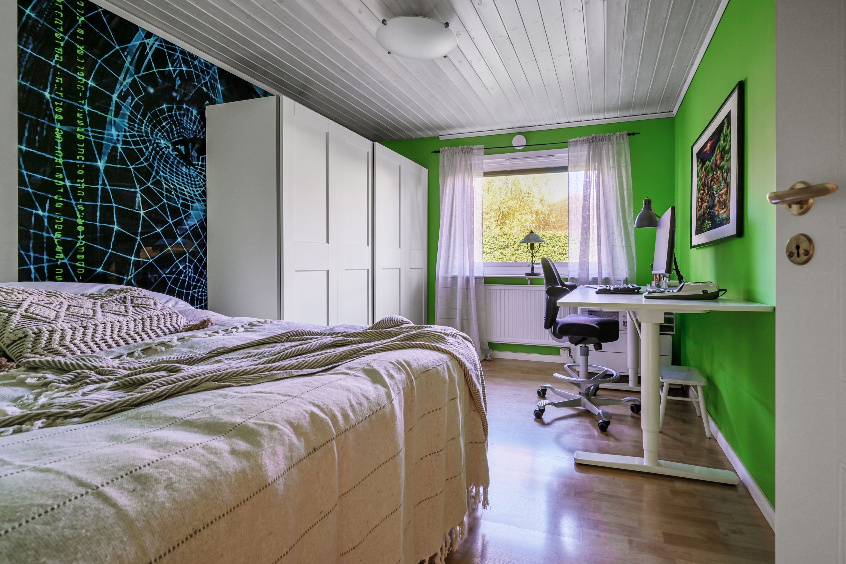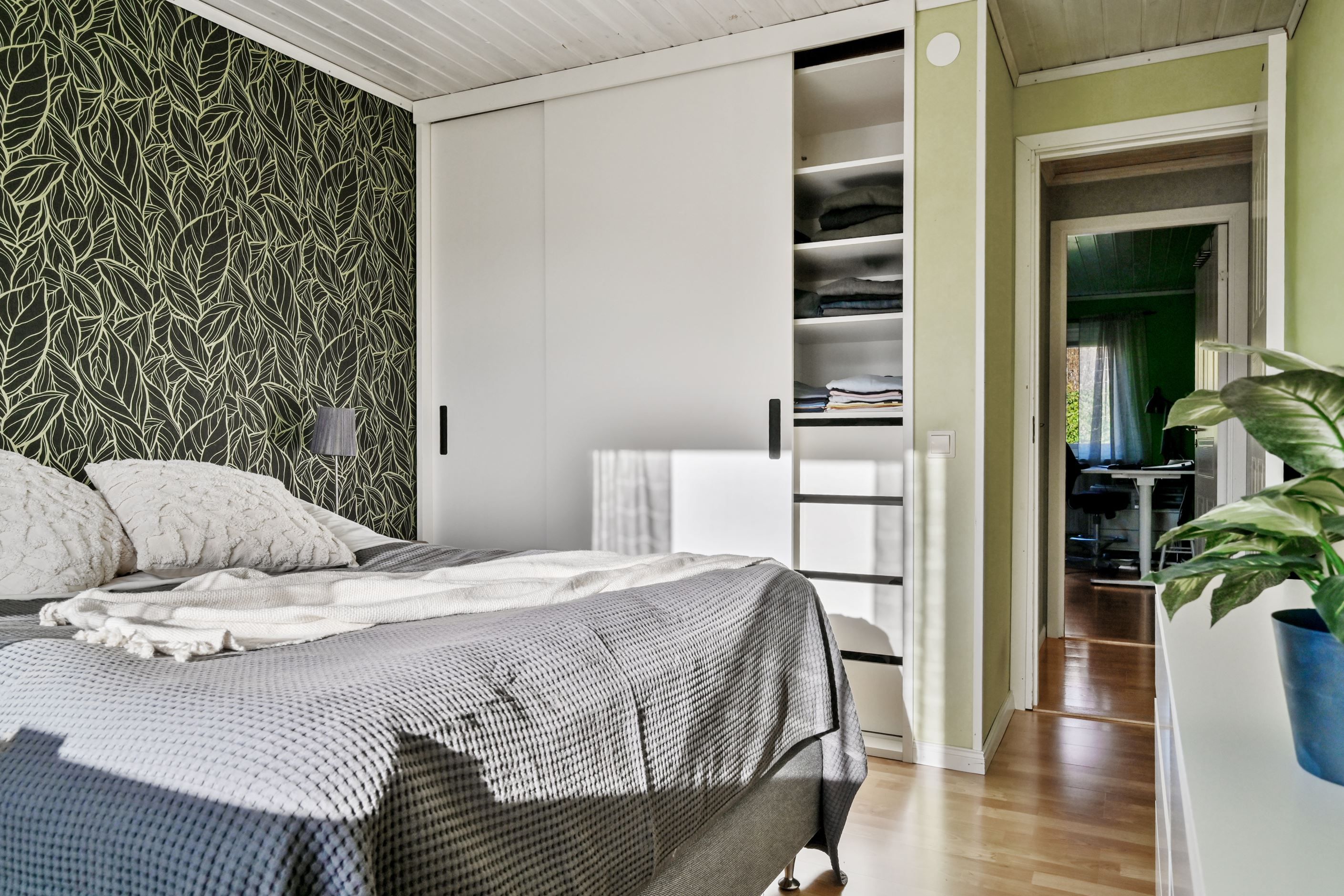 Entréplanet inrymmer två sovrum, båda med bra garderobsförvaring, samt en rymlig klädkammare som ger ytterligare plats för kläder, skor och textilier.