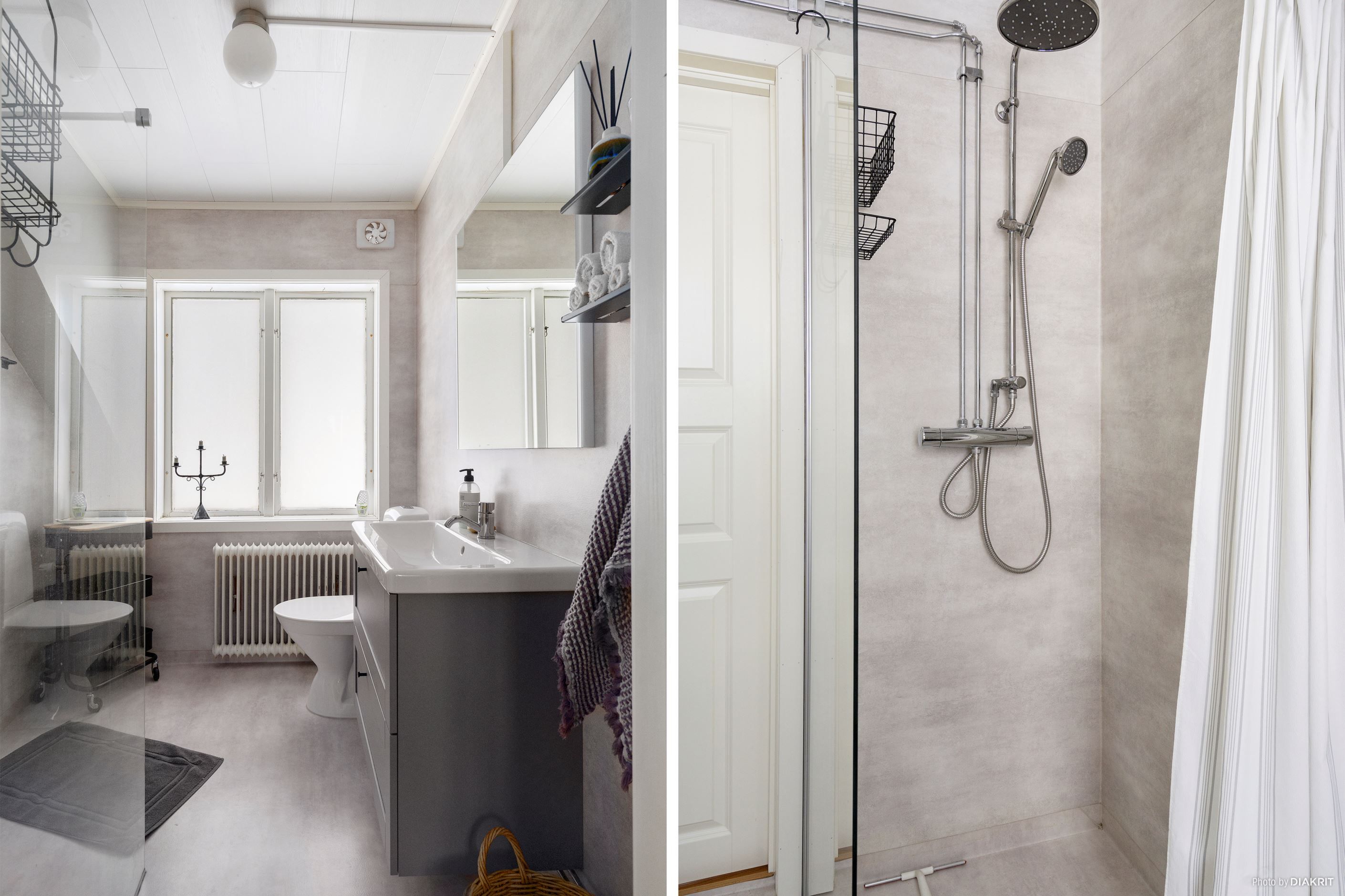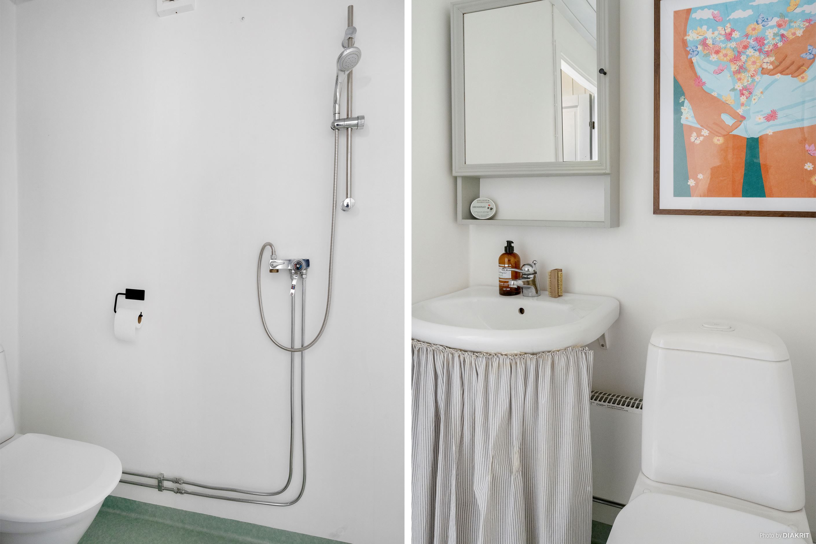 Entréplanet rymmer en stor och välkomnande hall, ett kök med separat matplats, ett ljust allrum med gott om plats för både umgänge och avkoppling samt ett sovrum som idag är inrett i den del av allrummet som tidigare nyttjats som matplats. Här finns även toalett med dusch. Planlösningen ger flexibilitet och möjlighet att anpassa ytorna efter behov – oavsett om du önskar fler sovrum eller större sociala ytor.