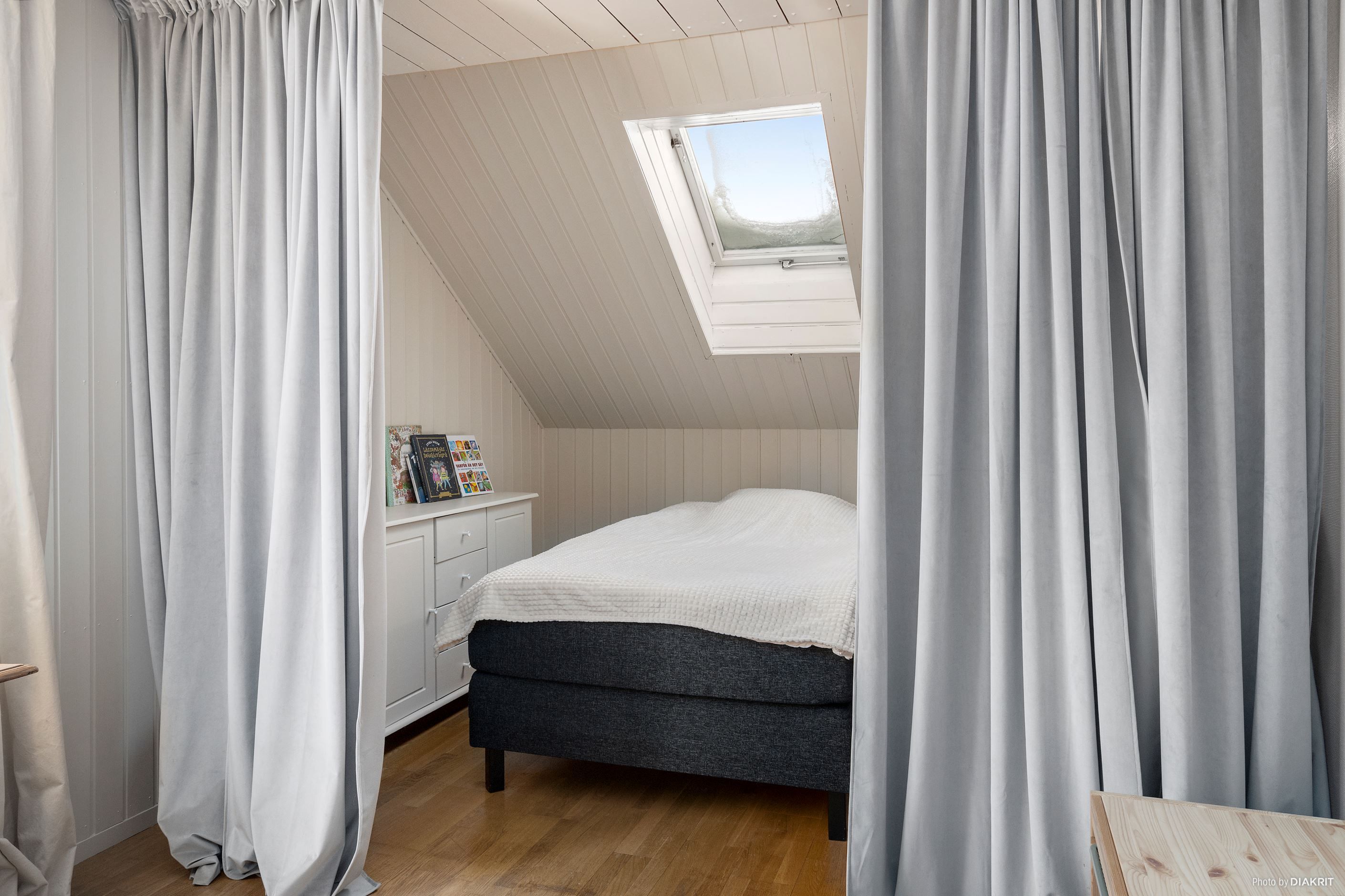 En trappa upp finns tre rymliga sovrum – samtliga med walk-in closet – samt ett renoverat badrum. Här finns gott om plats för både familjeliv och gäster, med genomtänkta förvaringslösningar som underlättar vardagen.