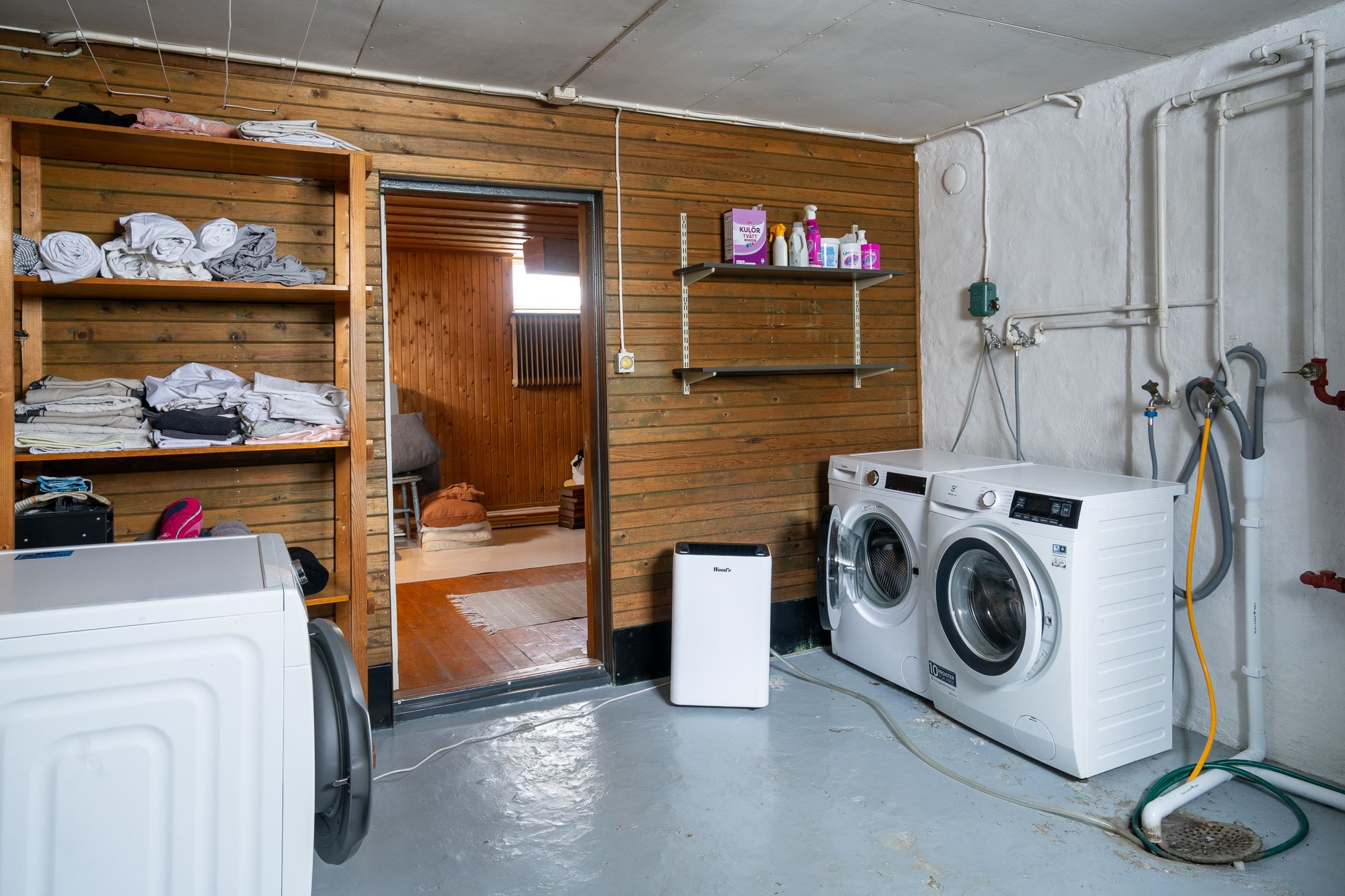Källarplanet adderar ytterligare användbara ytor i form av gillestuga som kan nyttjas som extra sovrum eller hobbyrum, snickarverkstad, tvättstuga samt en inredd vinkällare med mörk och sval förvaring – ett uppskattat tillskott för både praktiska behov och livsnjutning.