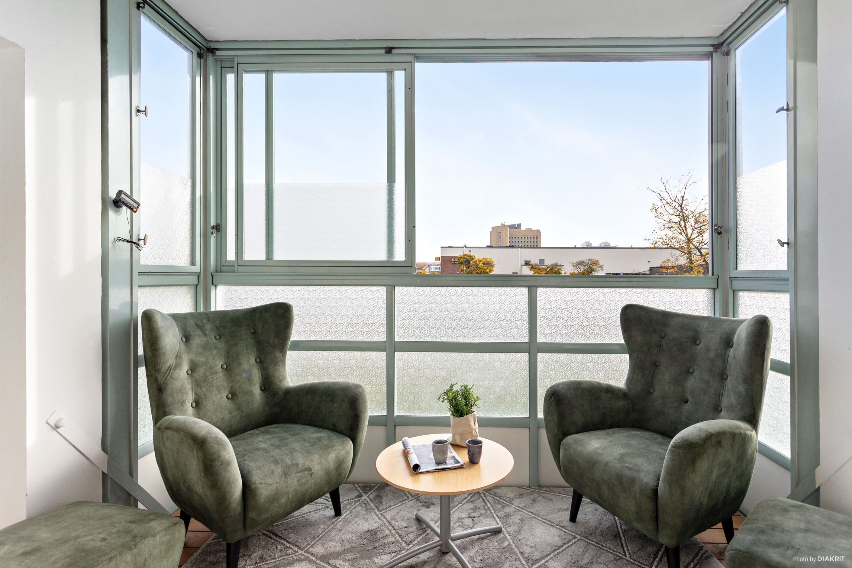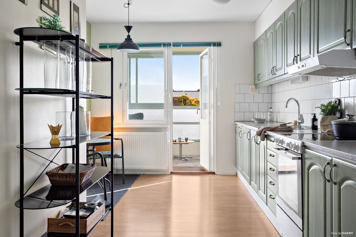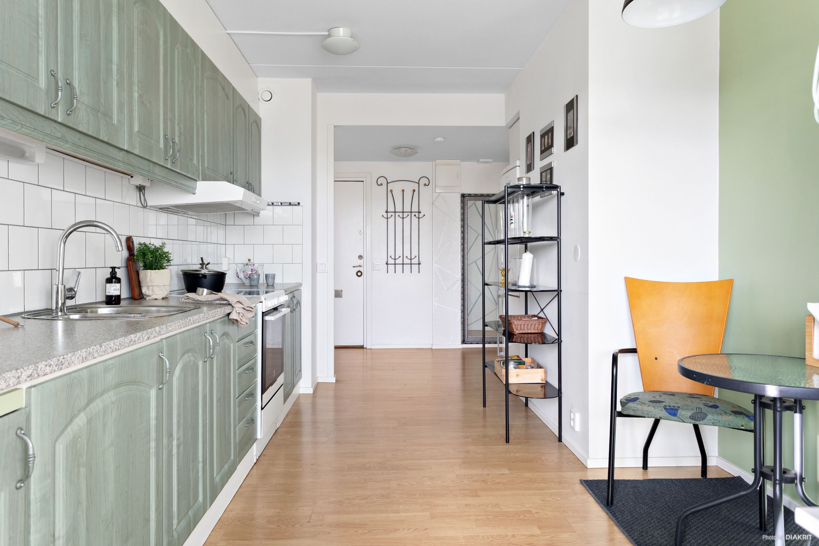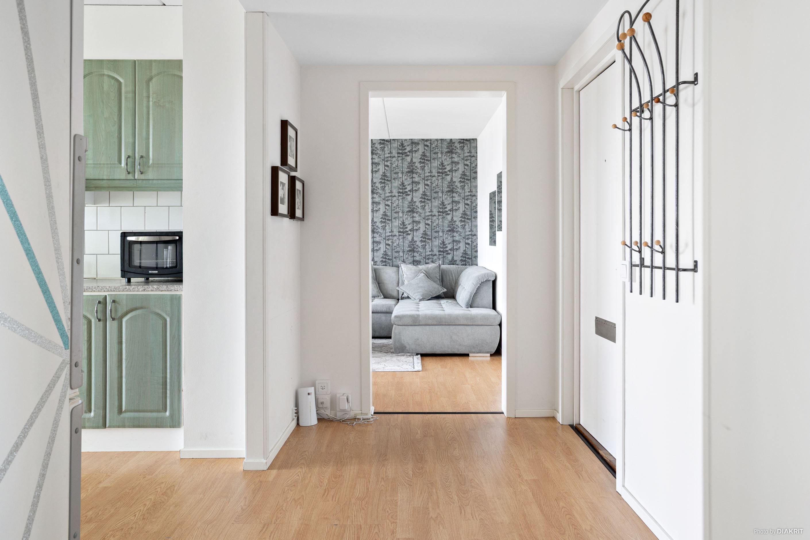 Vardagsrummet är öppet och lättmöblerat med stora fönster som släpper in rikligt med dagsljus. Köket erbjuder generösa arbetsytor och gott om förvaring, perfekt för dig som gillar att laga mat eller bjuda på middag. Sovrummet är rymligt och rogivande, och badrummet har allt du behöver för en bekväm vardag.