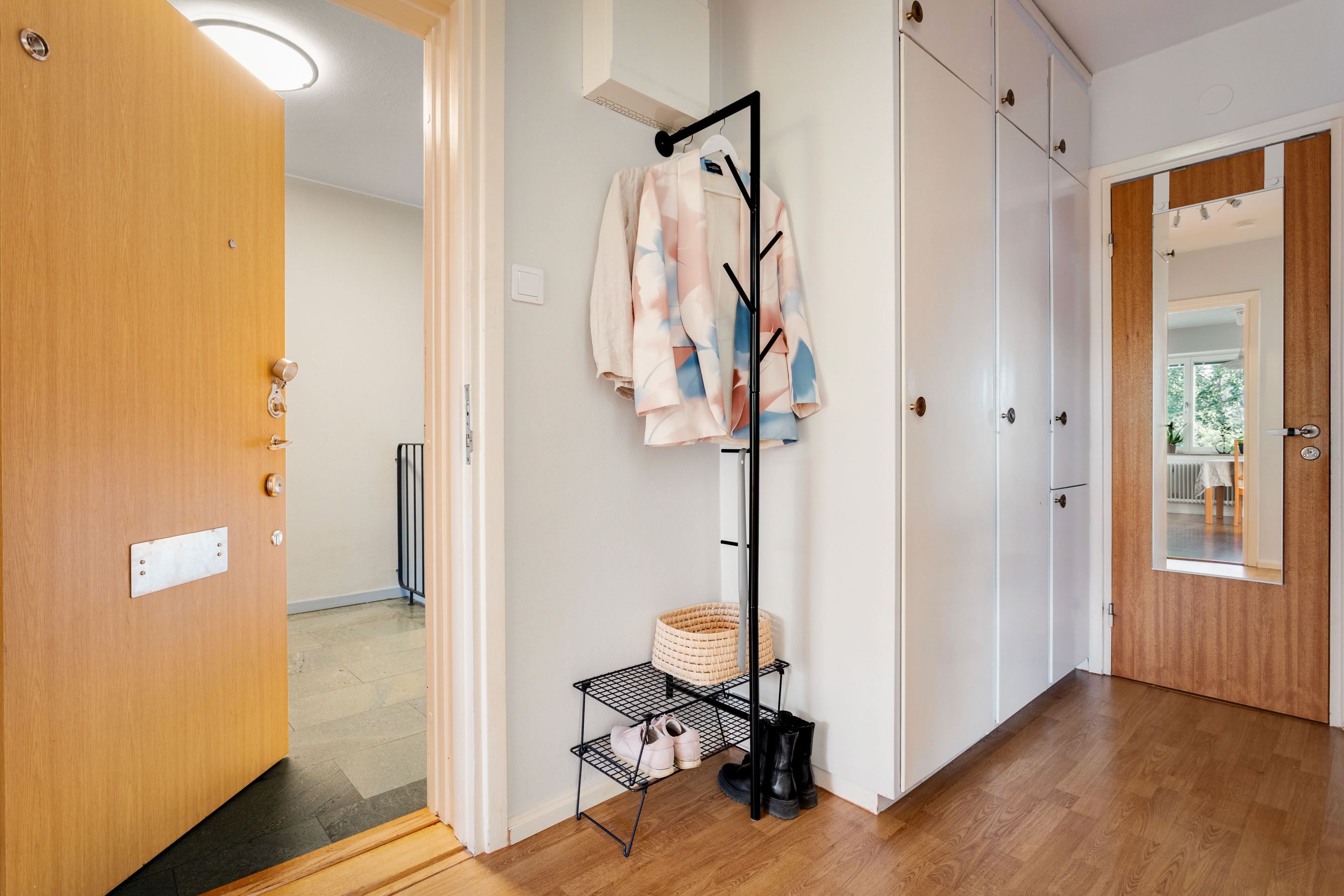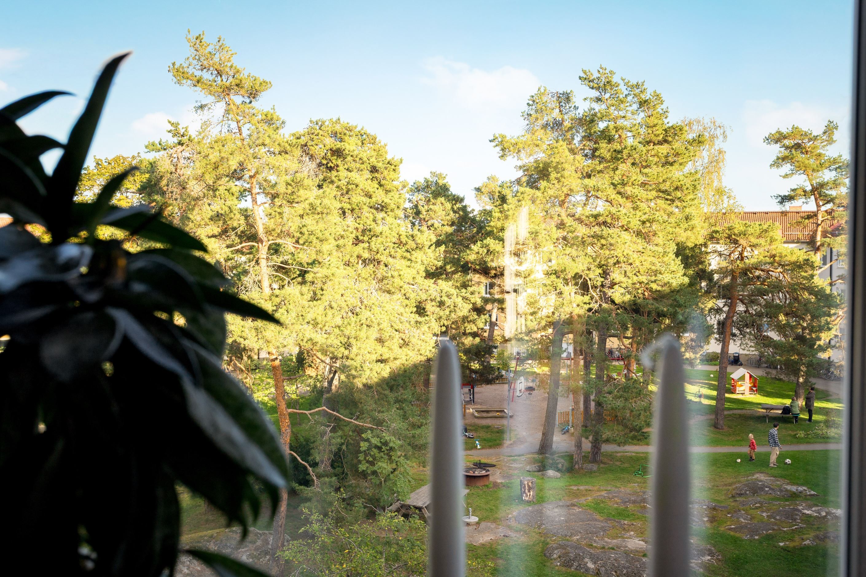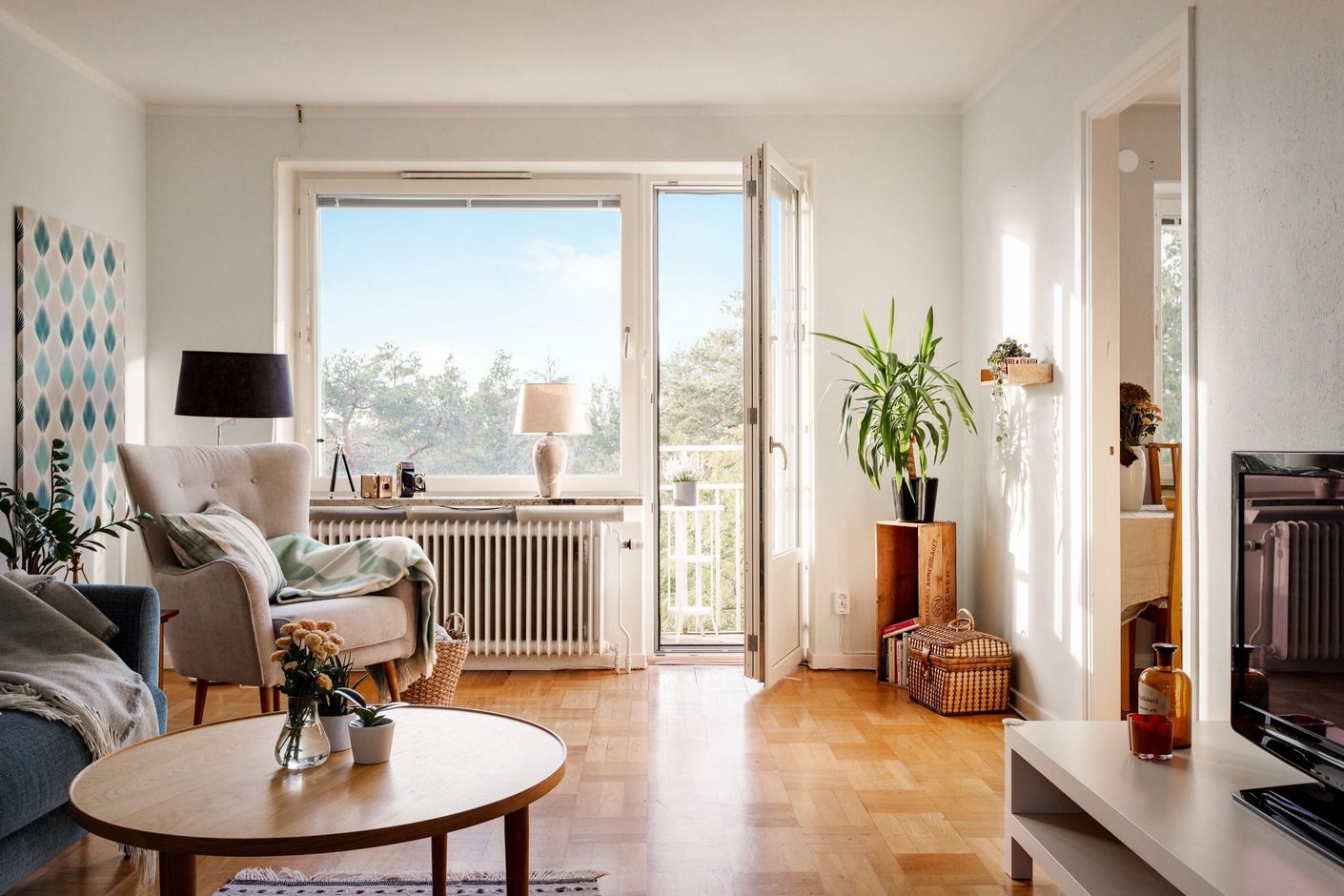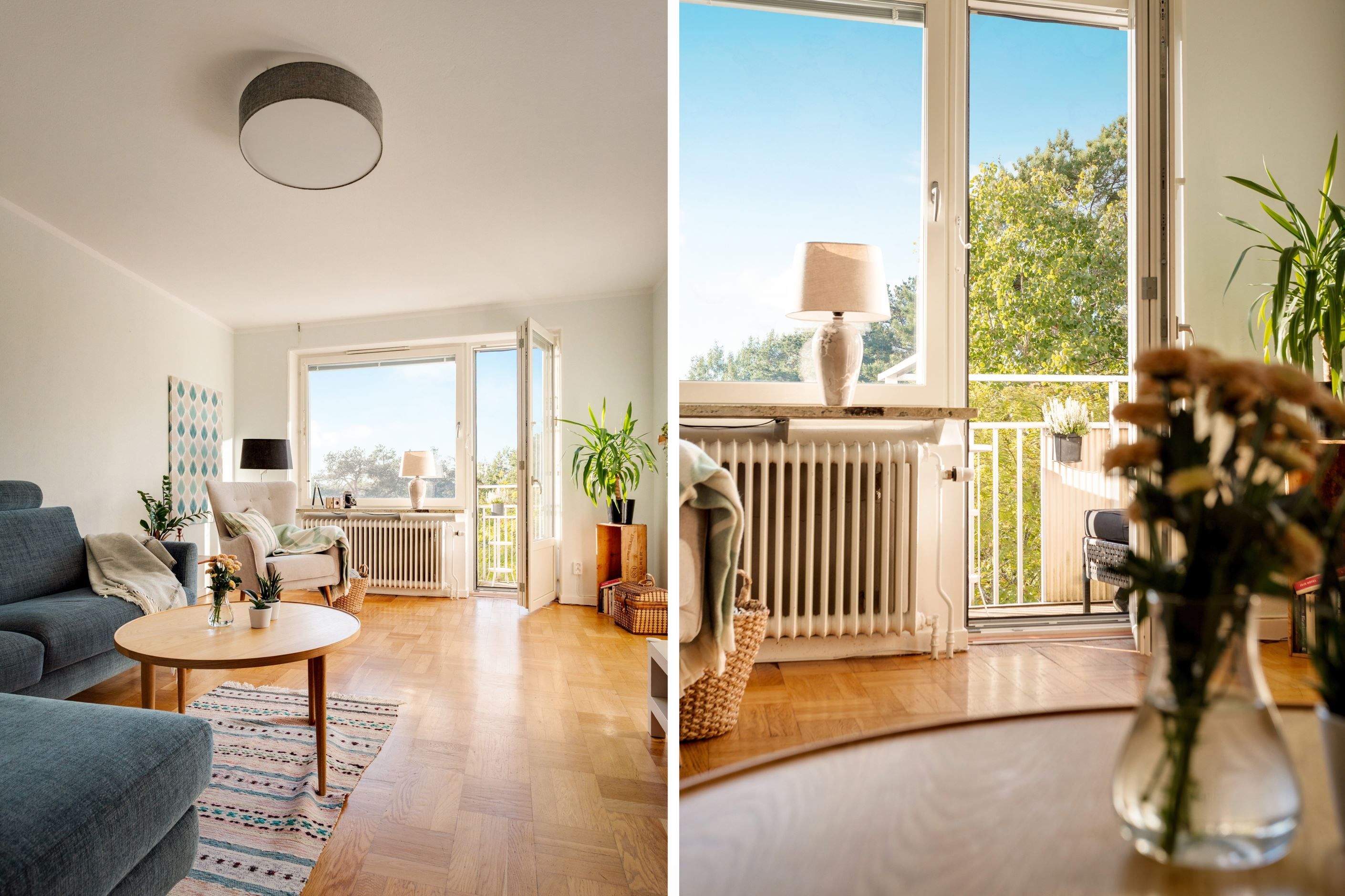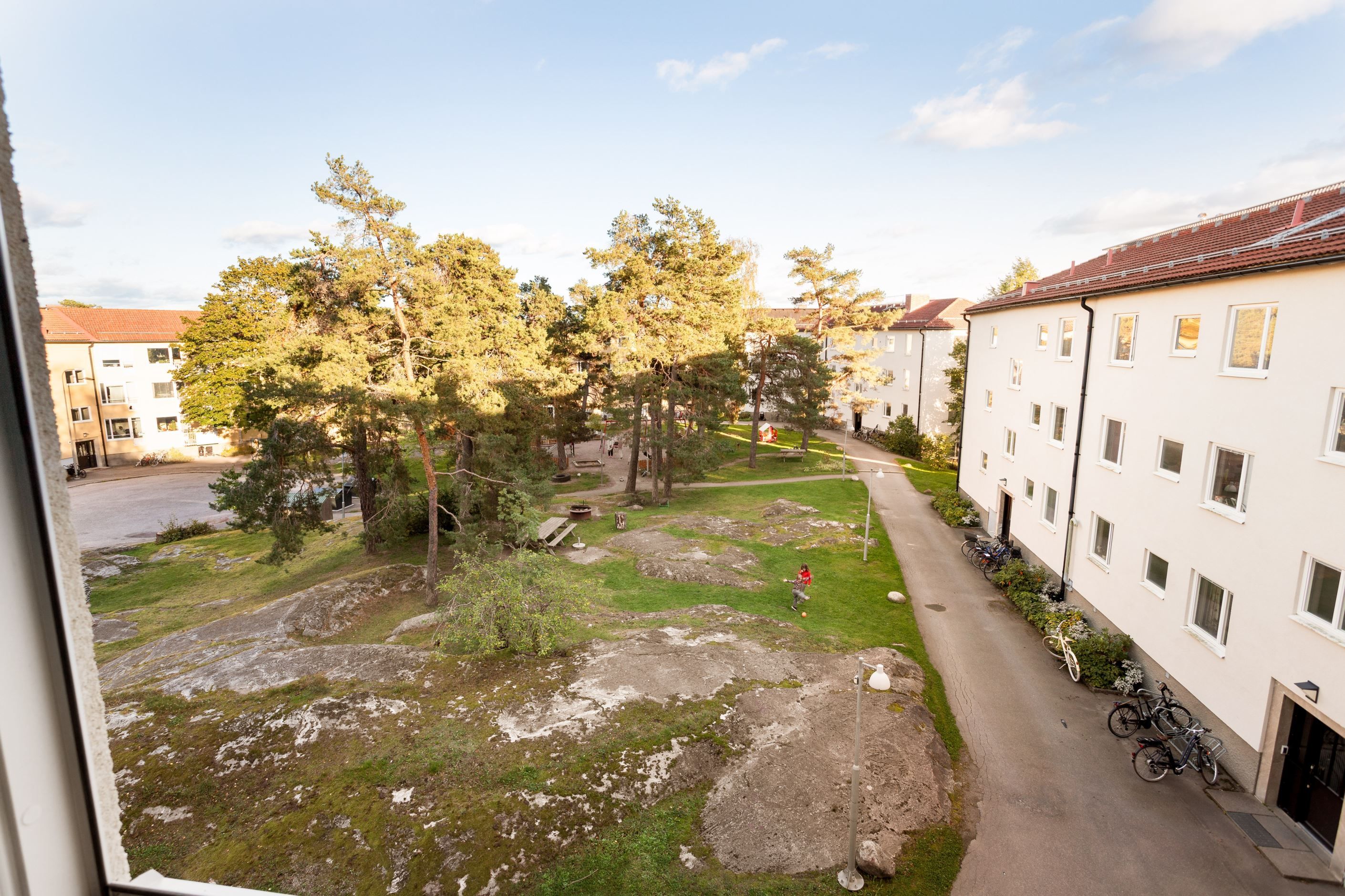 Med ett högt läge bor ni helt fritt från insyn med rogivande utsikt över trädtoppar och grönskande omgivning. I lägenheten finns gott om förvaringsutrymmen i flera rejäla garderober varav flera i original.