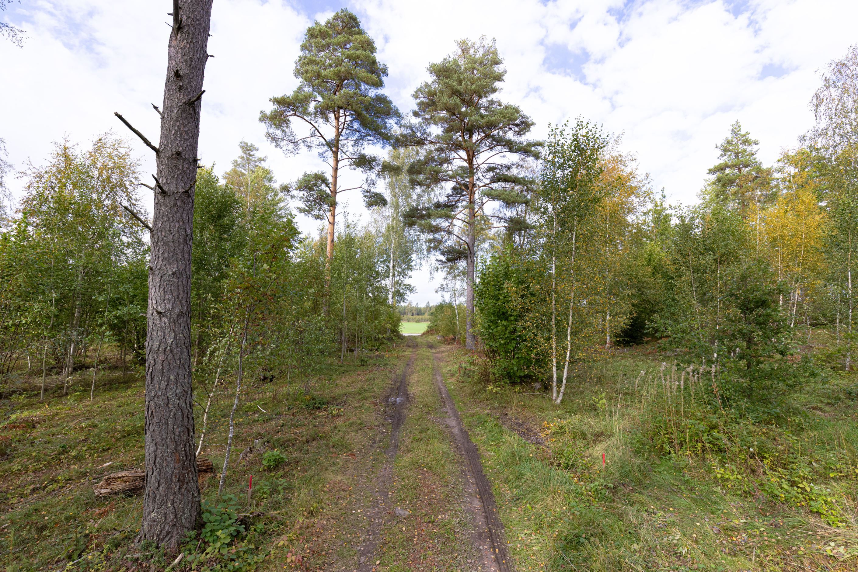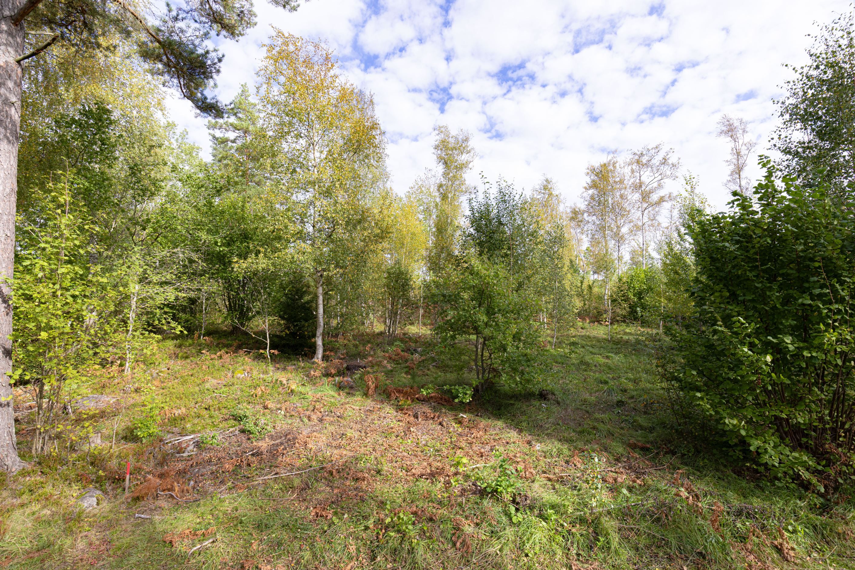 Kostnader för avverkning av träd, bortforsling och anläggning av väg till tomten ingår inte i priset.