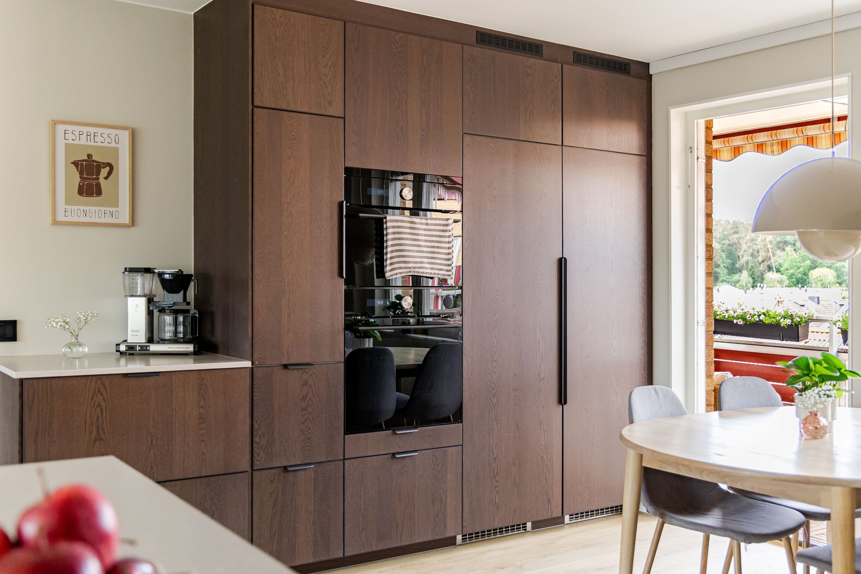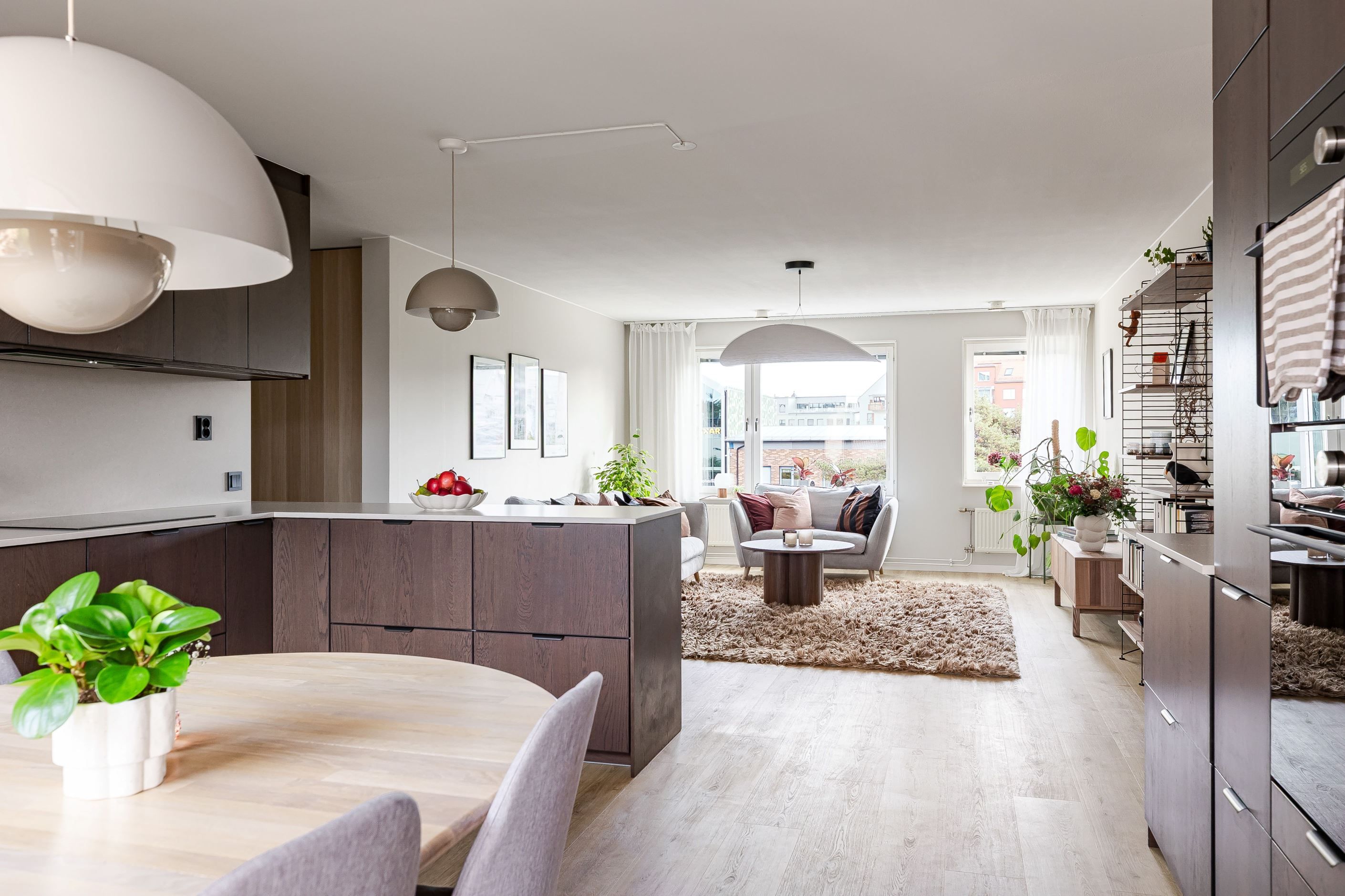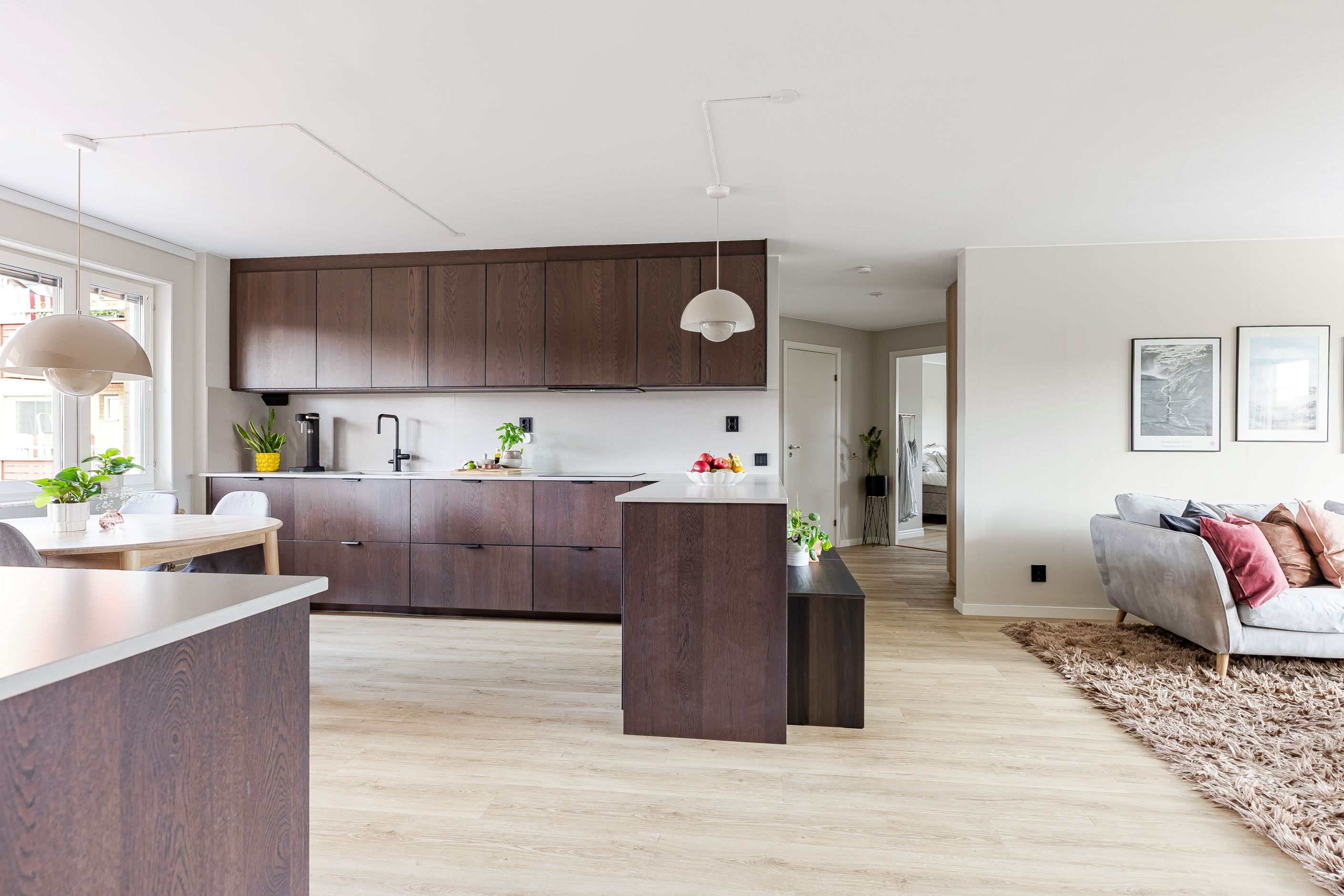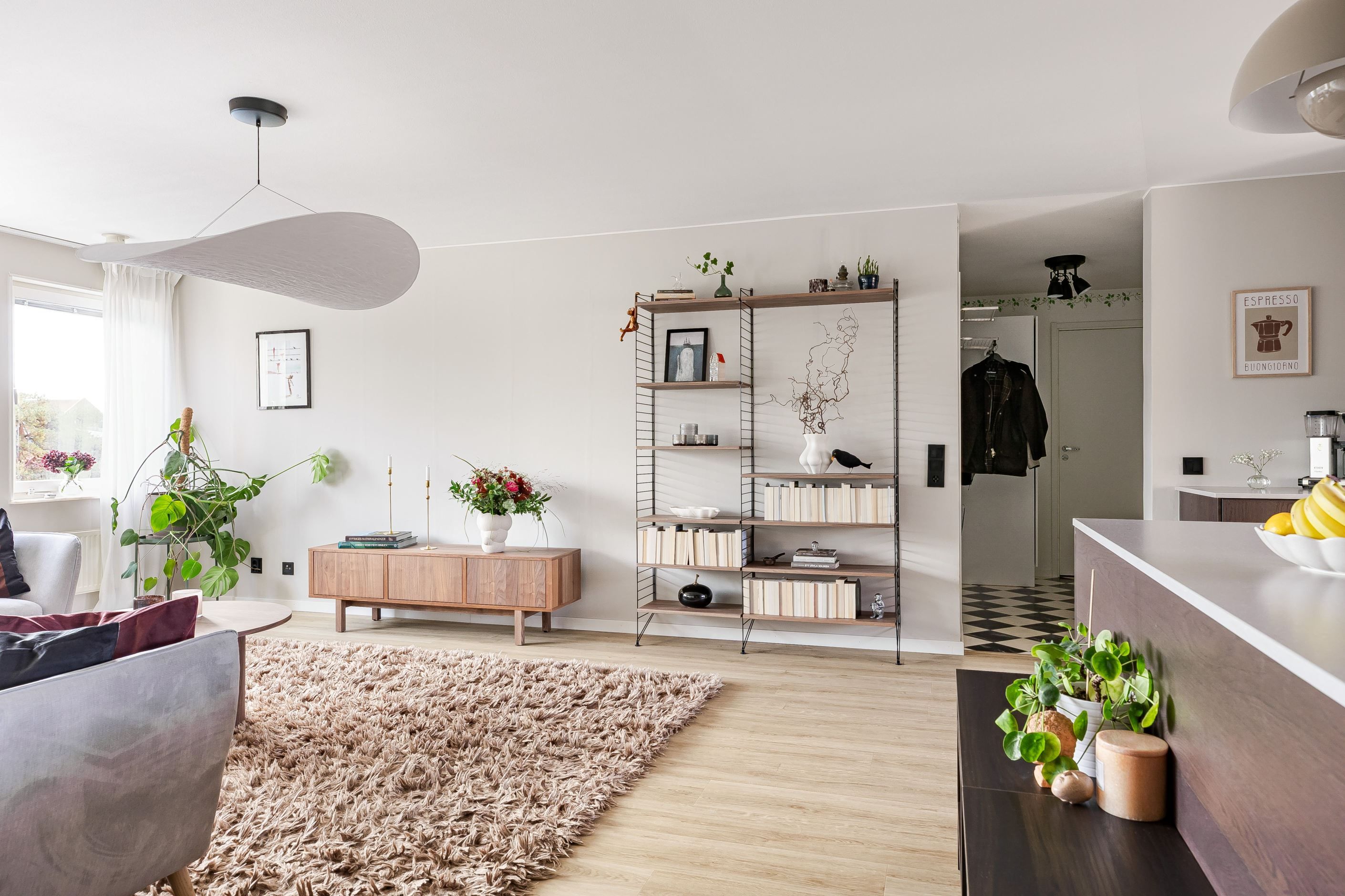 Bostaden erbjuder en genomtänkt planlösning där det sociala står i centrum. Det stilrena köket är nyrenoverat och bjuder på generösa arbetsytor, gott om förvaring och en öppen koppling med köksö mot vardagsrummet – perfekt för både vardagsliv och sociala tillställningar. Från köket kliver du rakt ut på den rymliga balkongen som vetter mot sydväst – med sol större delen av dagen och utsikt över den grönskande innergården, radhustaken och Vallaskogen i bakgrunden. En riktigt härlig plats att njuta på året om.