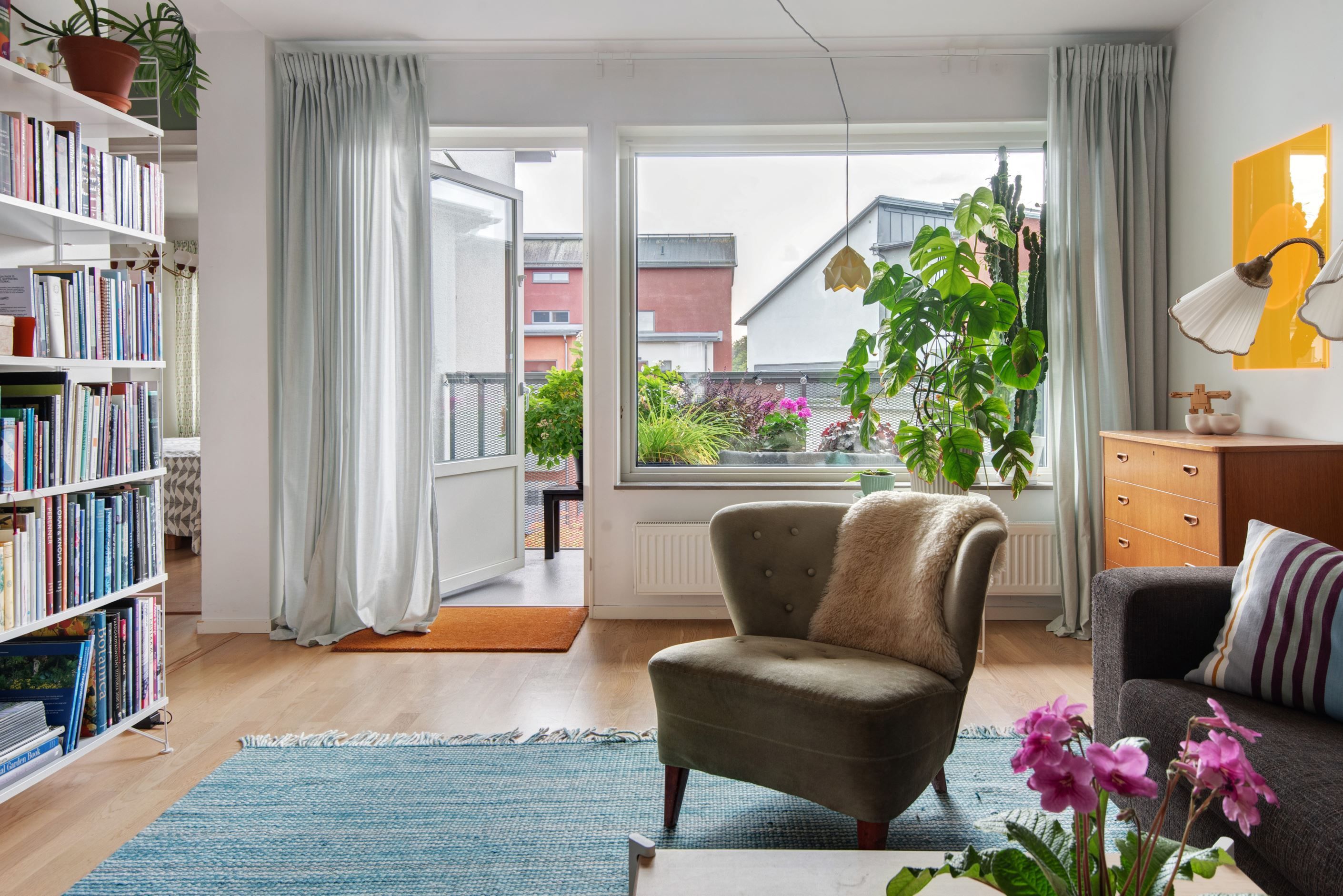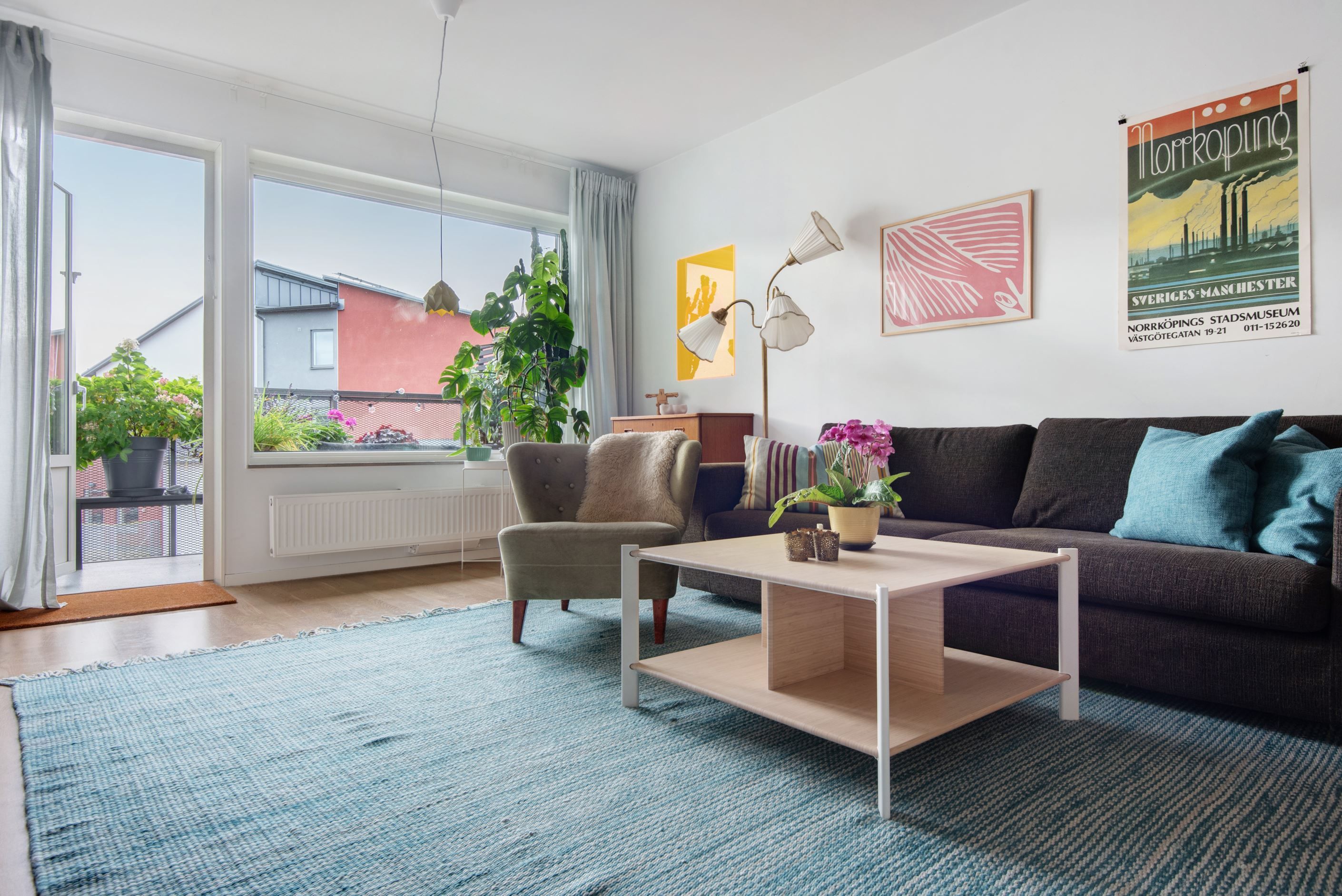 - Söderläge med väggar som skapar lä på balkongen.