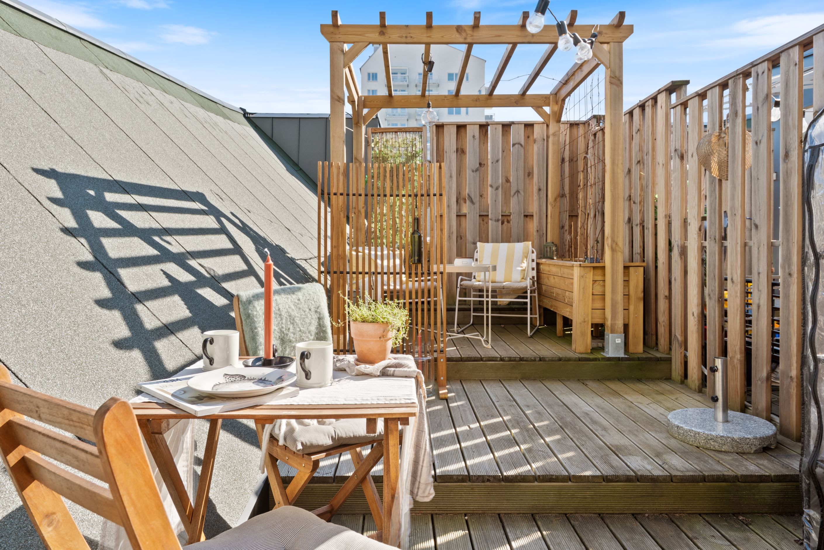 Unik etagelägenhet i två våningsplan med solig takterrass – snart till salu!