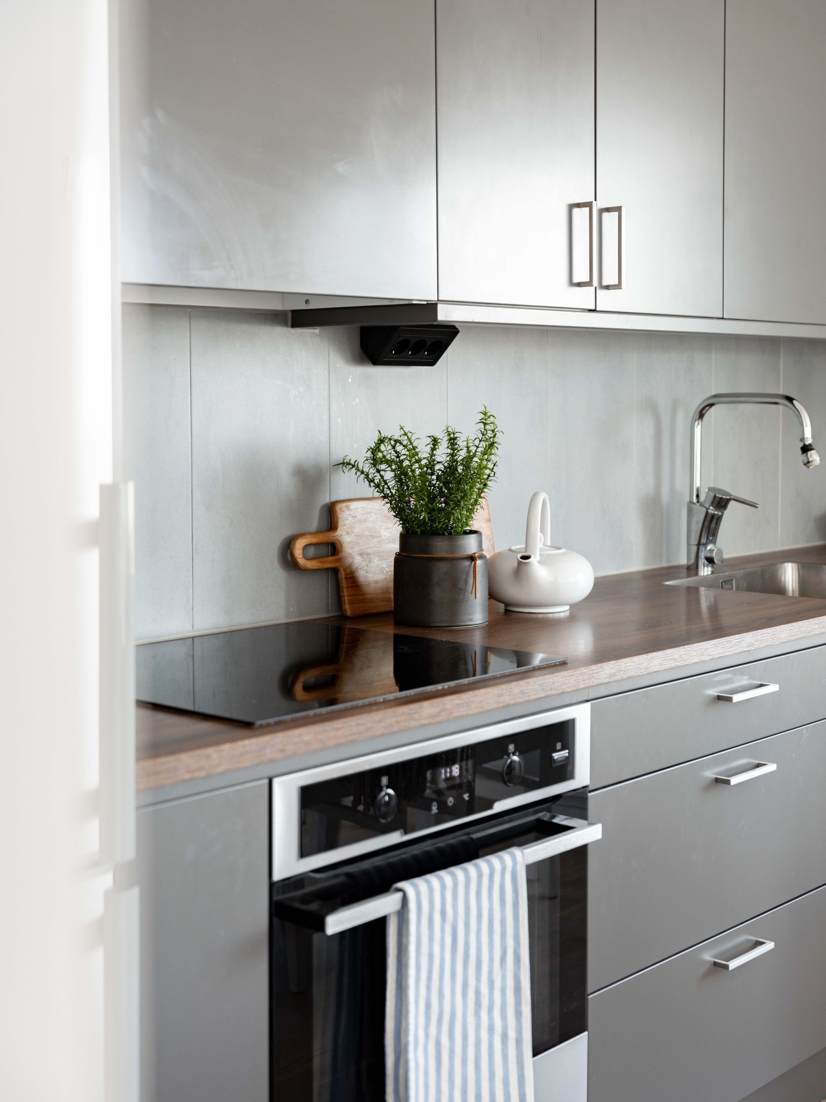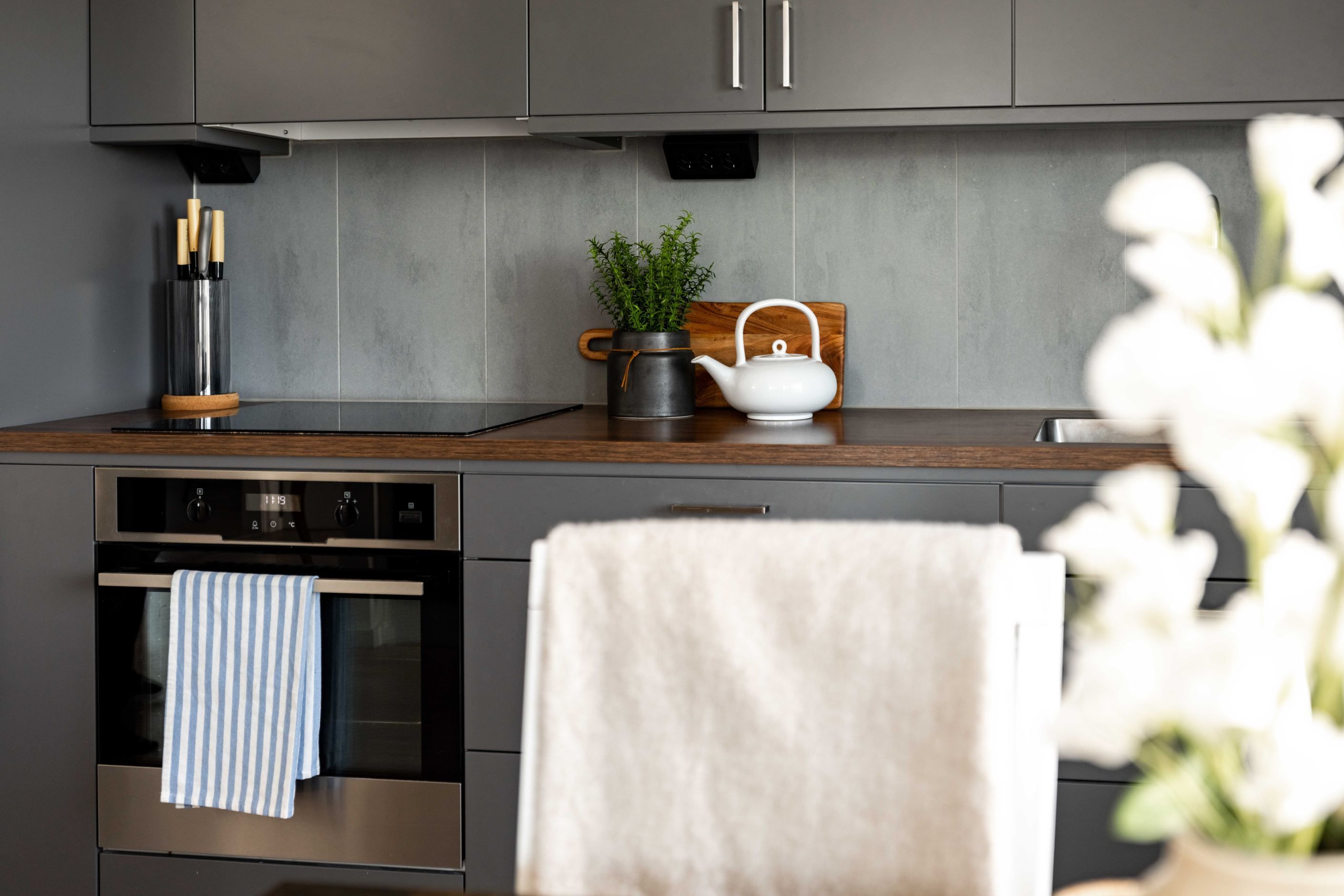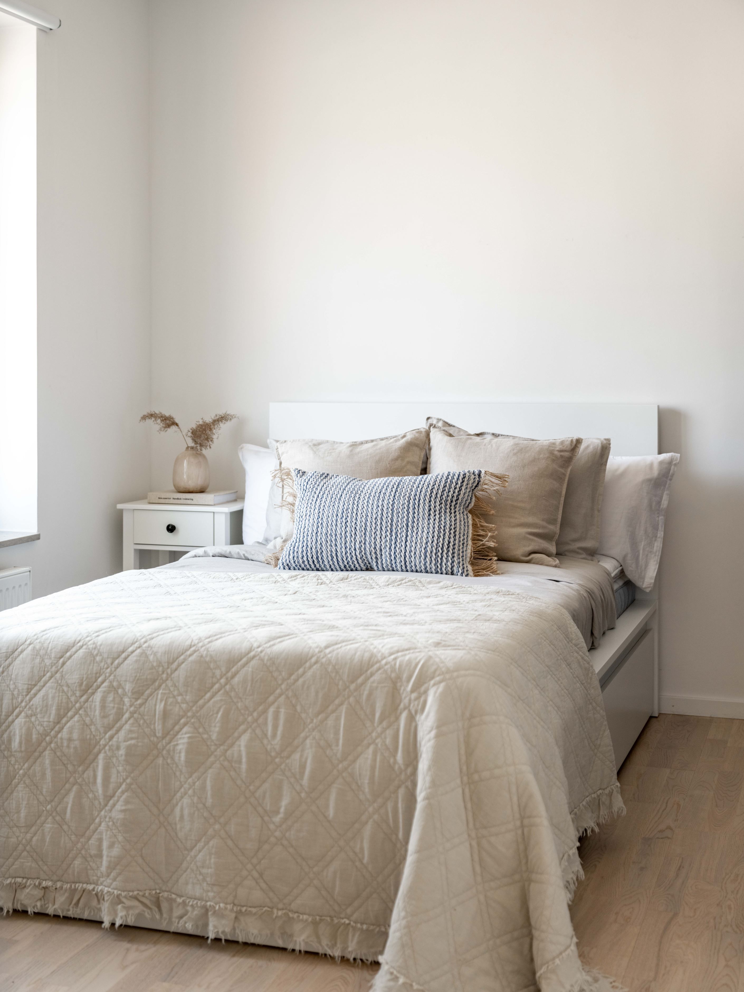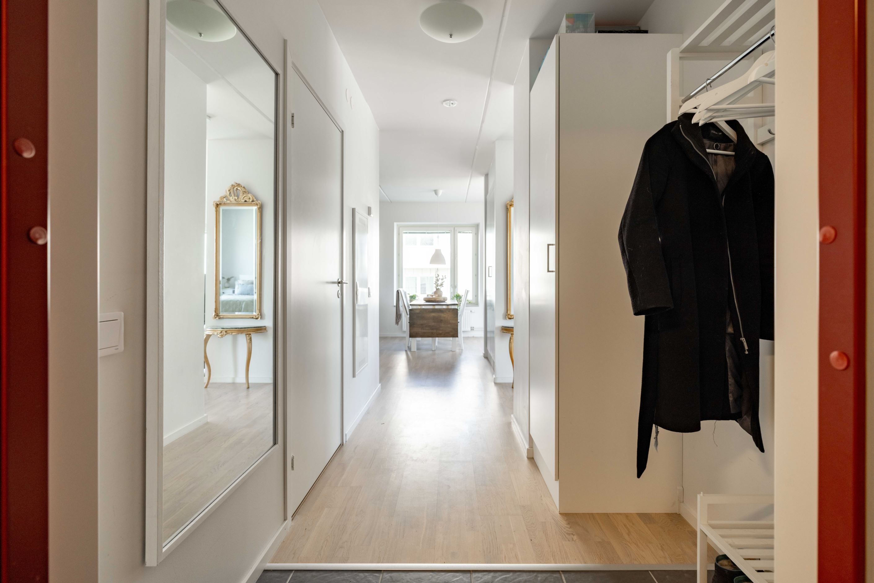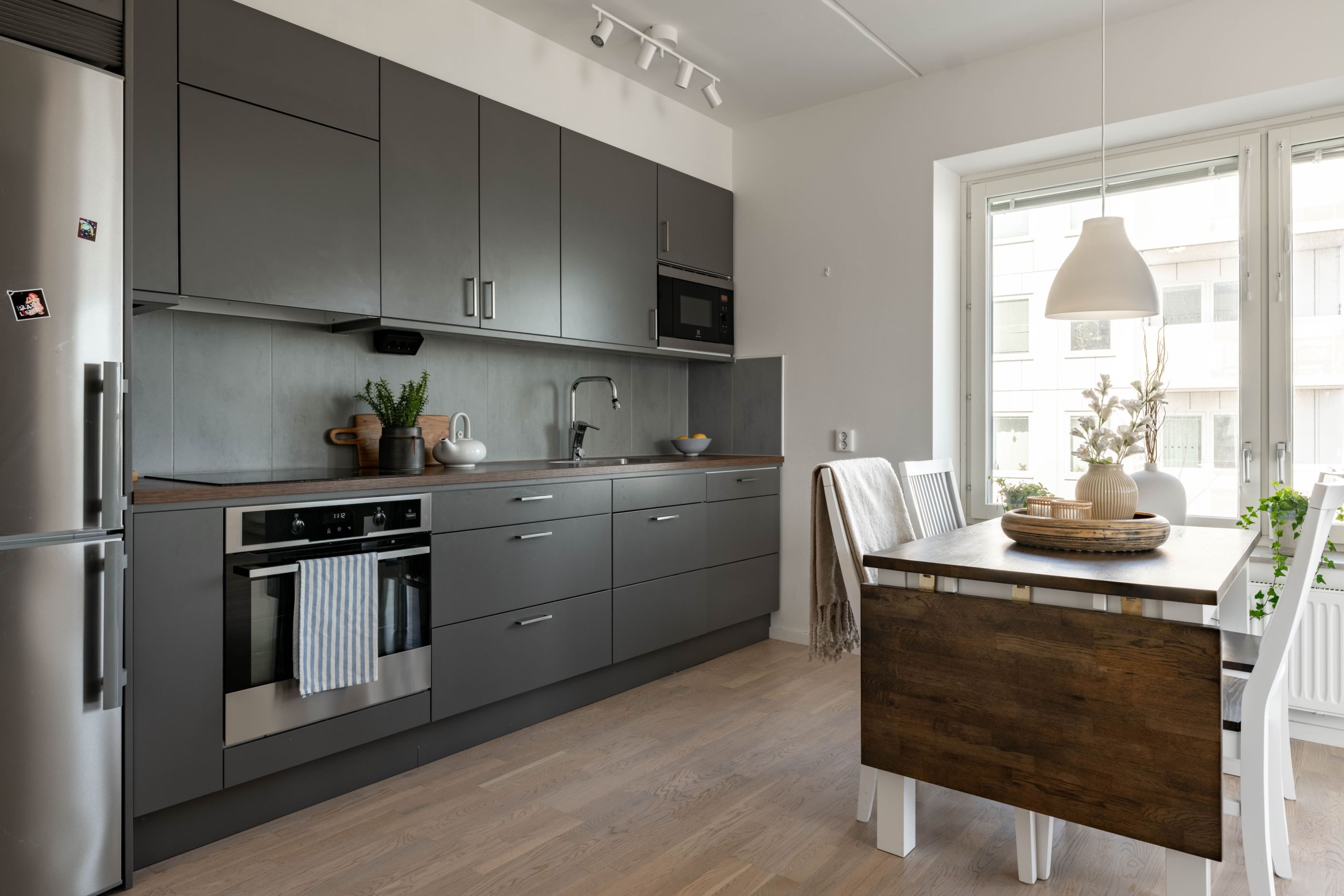 Det stora sovrummet ligger lugnt och avskilt, med bra förvaring som håller vardagen i schack. Badrummet är helkaklat och utrustat med egen tvättmaskin och torktumlare – en sådan där detalj som snabbt går från lyx till självklarhet. Köket är inte bara stilrent utan också genomtänkt, med gott om förvaring och arbetsyta.