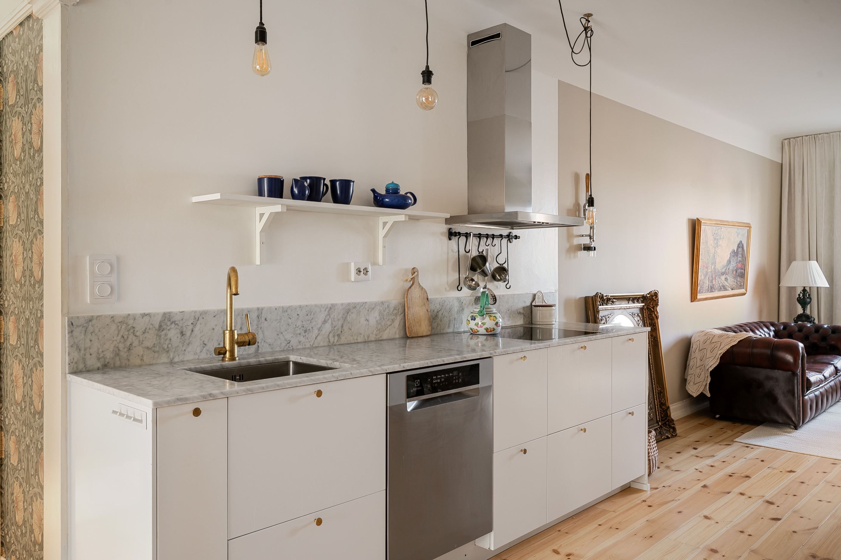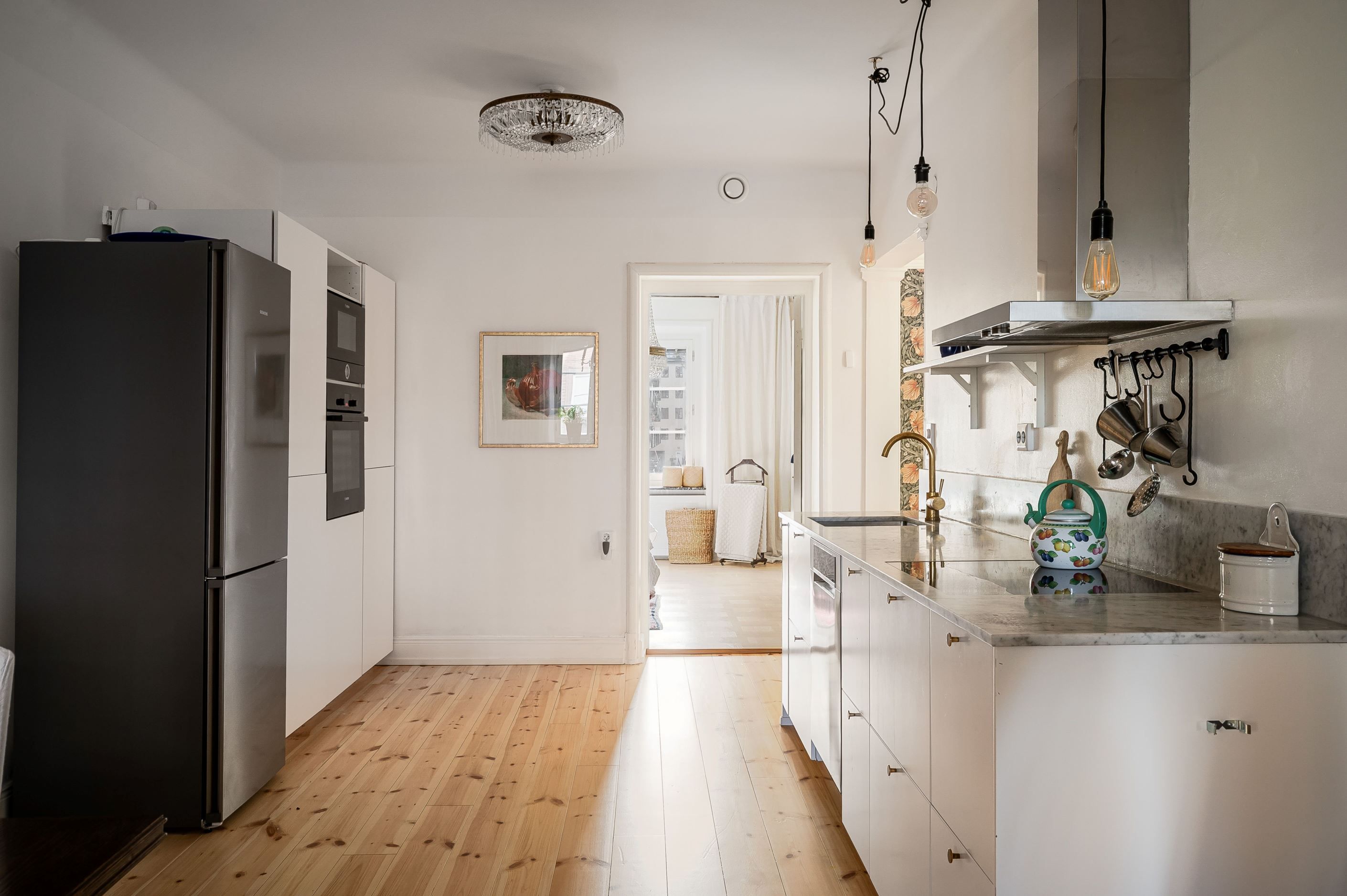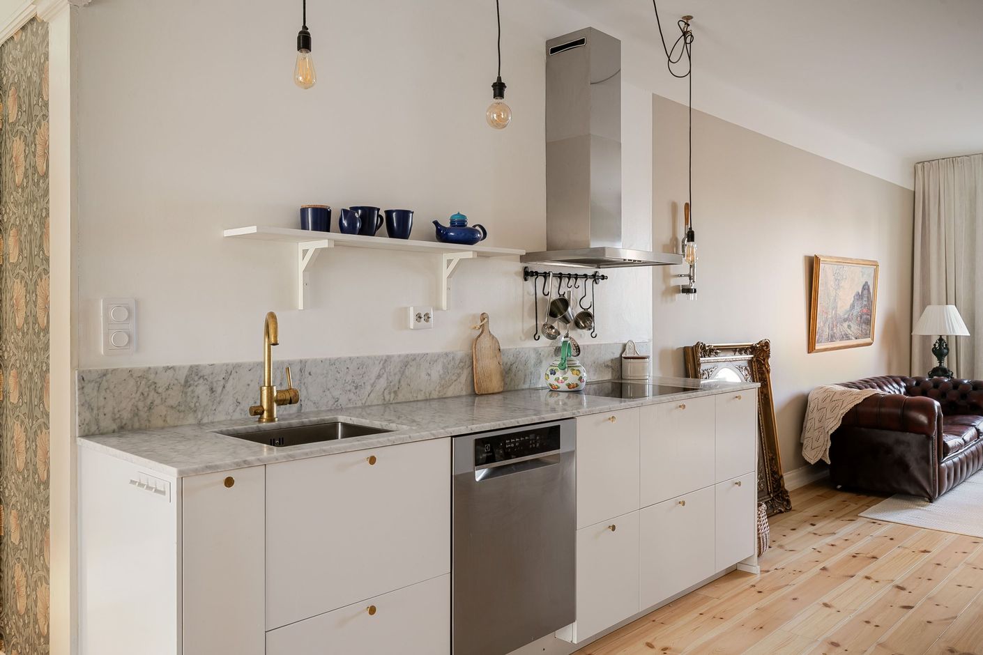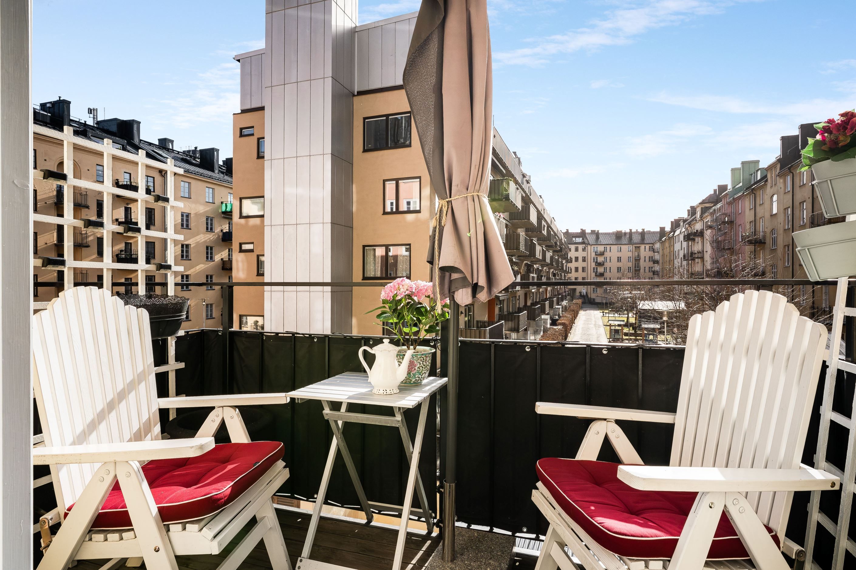 Lägenheten är belägen två trappor upp och har en härlig solig balkong som skapar en perfekt plats för avkoppling under stora delar av dagen. Här möts du av en social och öppen planlösning mellan kök och vardagsrum som ger en luftig och modern känsla, perfekt för både vardagsliv och umgänge.
