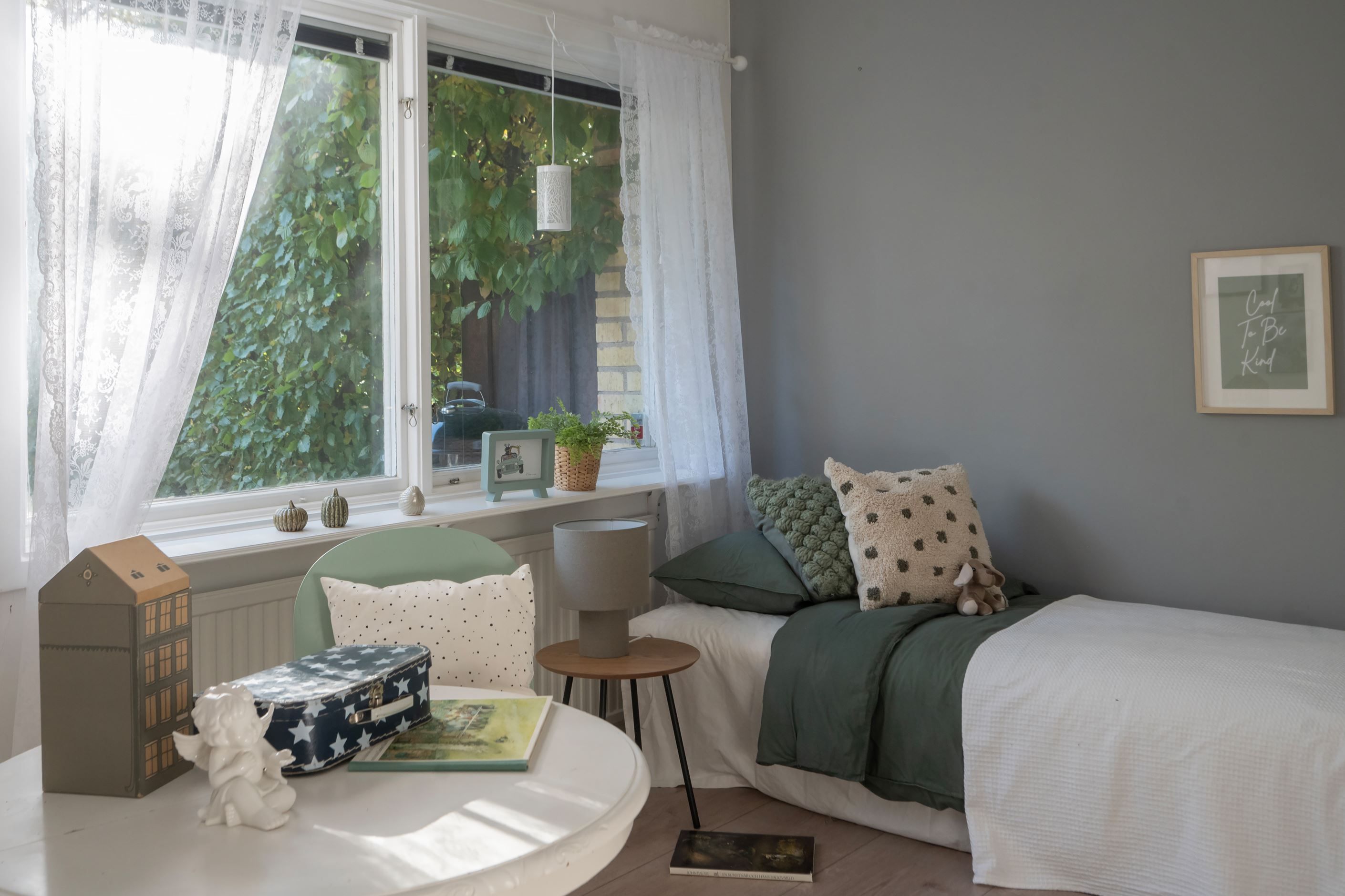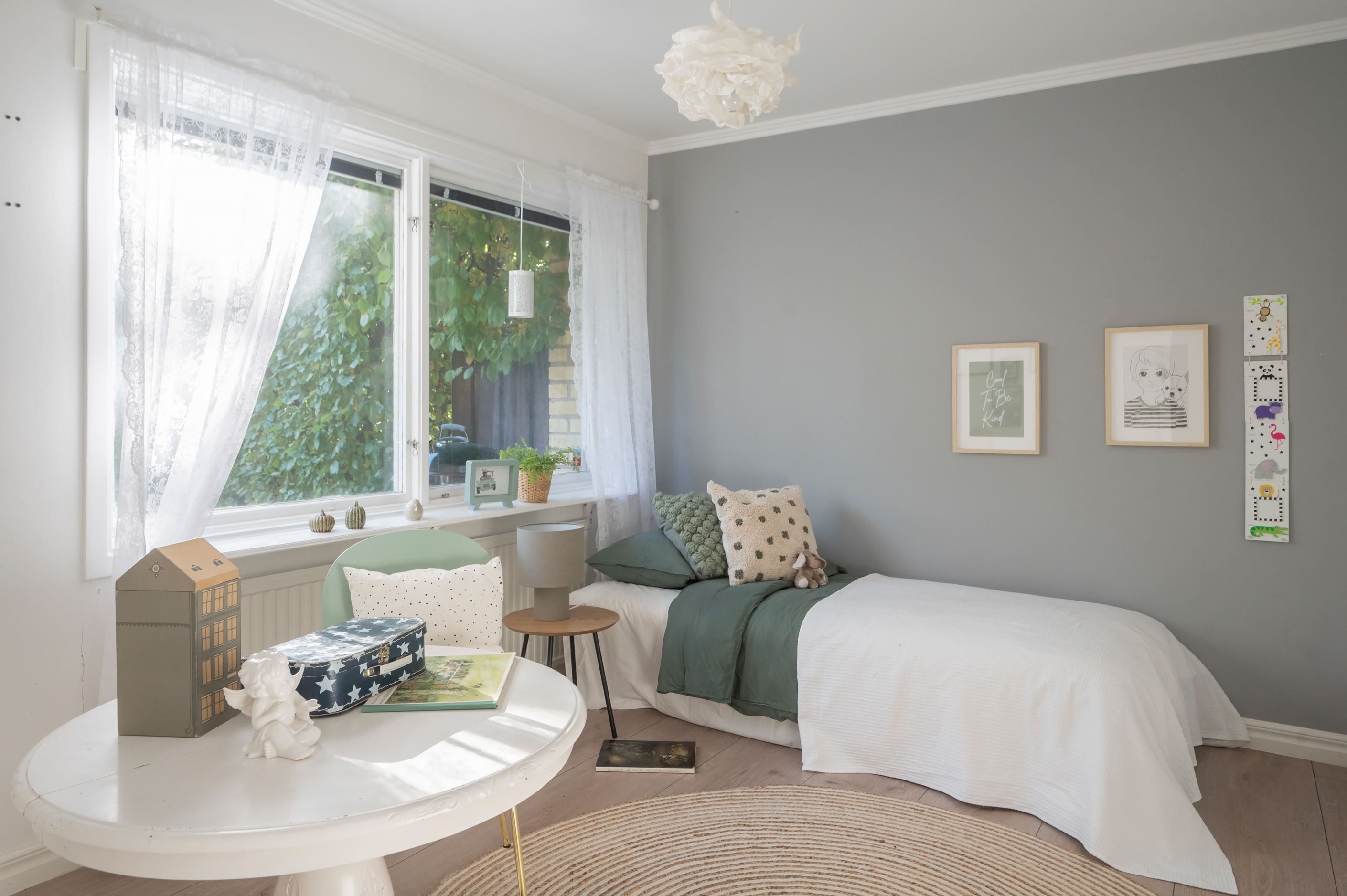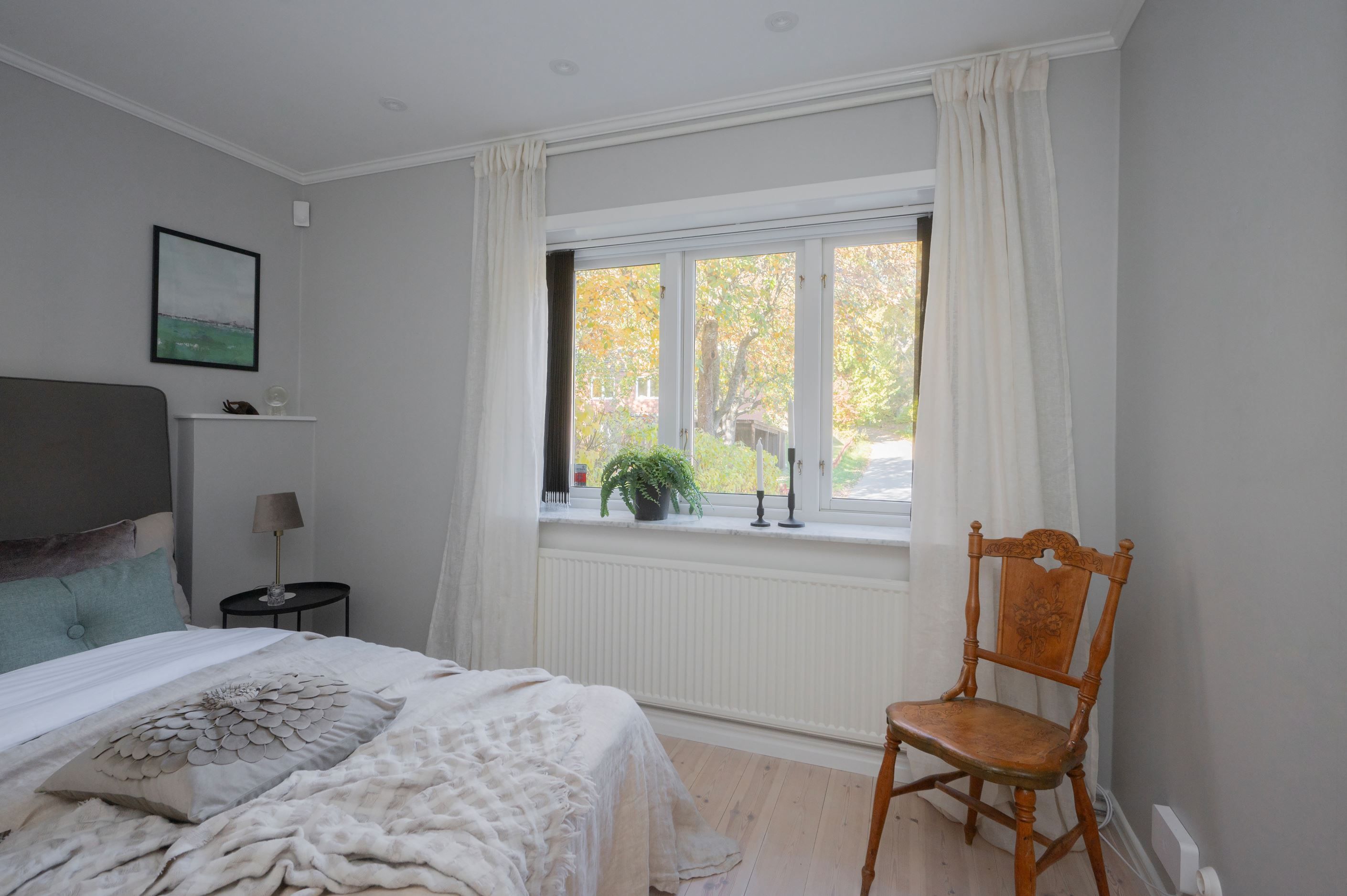Tre sovrum finns på detta plan, varav det största rymmer dubbelsäng och har gott om garderober. Ett av rummen används idag som barnrum och det tredje som hemmakontor, med direkt utgång till trädgården.