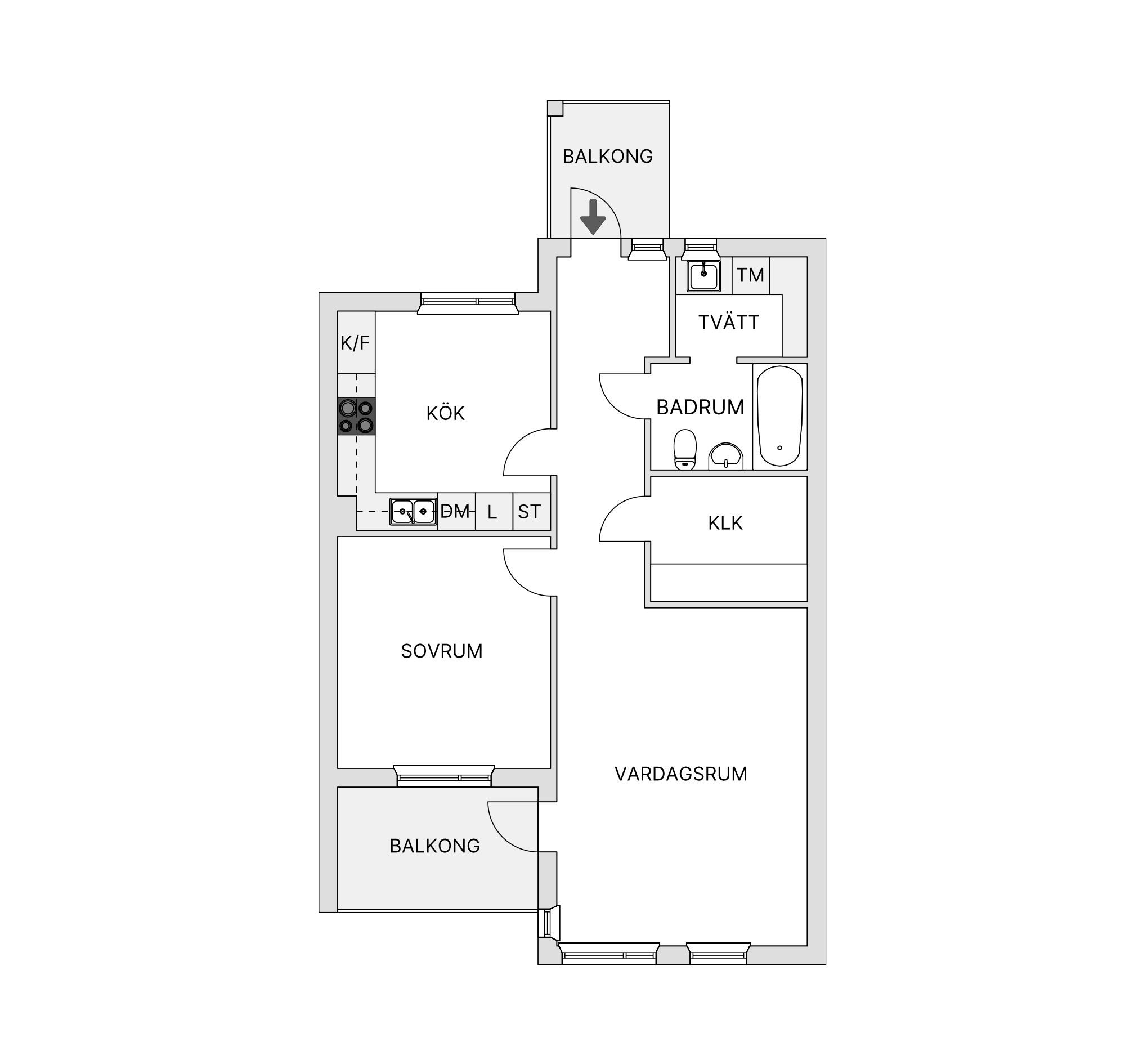 Välplanerad, insynsskyddad och trivsam tvåa med två balkonger – lugnt läge nära kommunikationer!